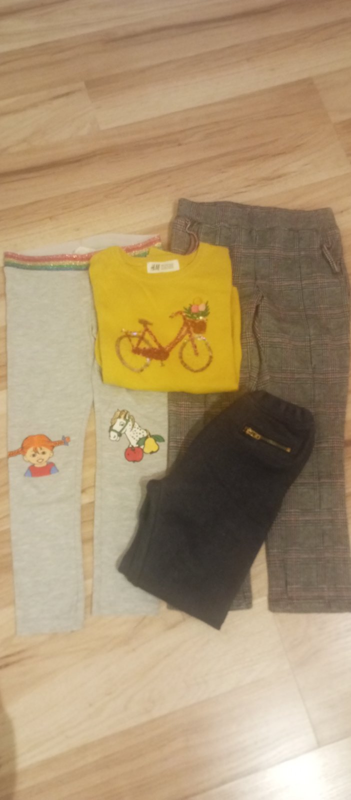 Ponúkam v top stave svetrík H&M, príjemný na nosenie, leginky Pipi dlhá pančucha H&M, teplé bavlnené karovane nohavice H&M a grátis leginky teplé imitácia rifloviny.