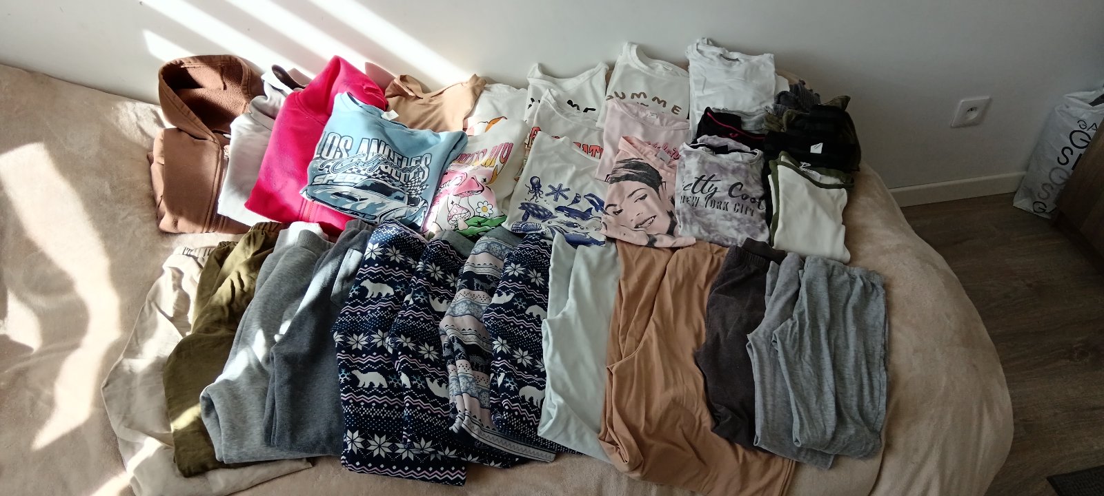 Predam velky balik oblecenia dievca v nosenom stave, oblecenie ma zmolky, ale niektore mikiny su nove, aj komplet krop top a nohavice.