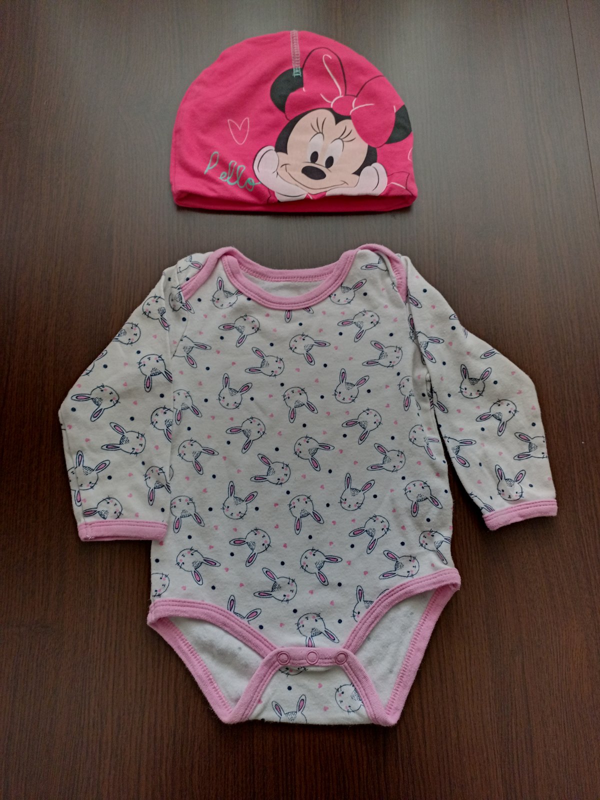 Krásny kompletík bez fľakov. Body sú veľ.74.Kraťasy zn. Reserved sú síce 68 ale môže ich nosiť kludne vačšie dieťatko . My sme ich nosili takto. K tomu všetkému,krásny letný klobúčik veľkost 74.