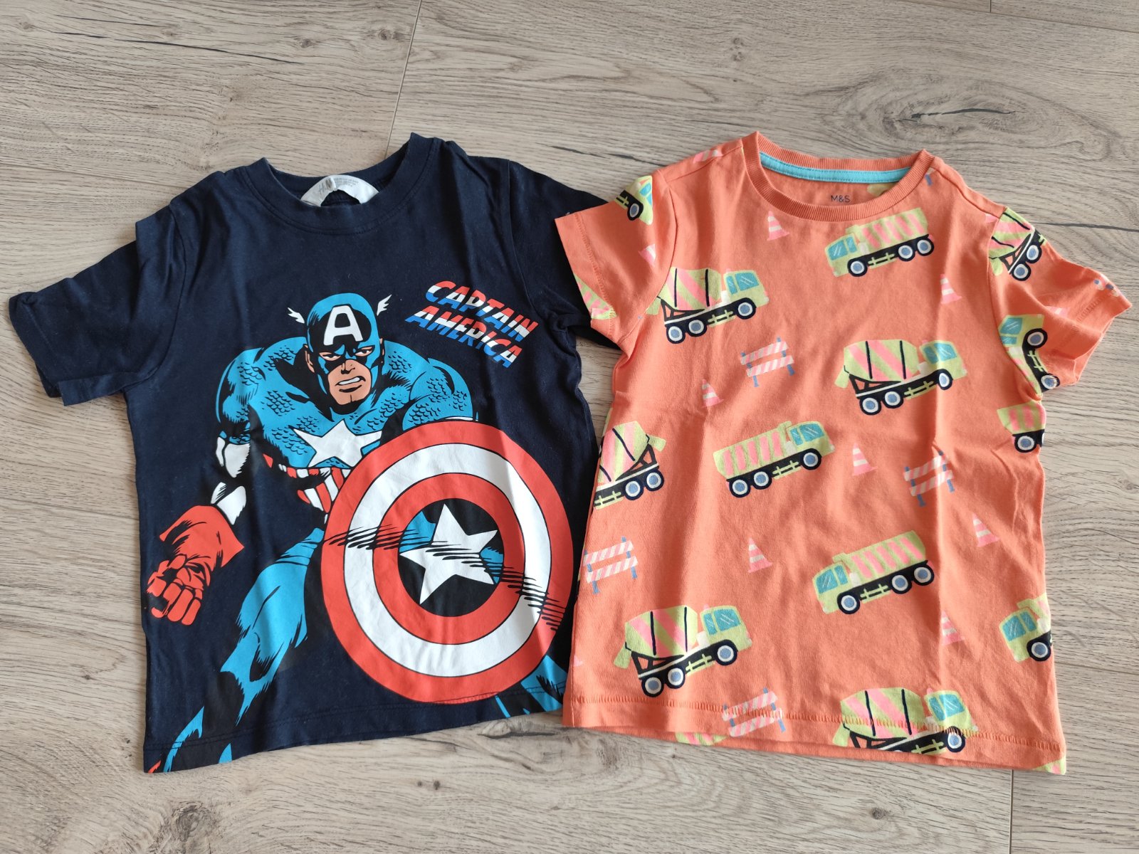 1. Oranžové s autíčkami - nové, len oprane, nestihlo sa vynosiť Zn. M&S originals veľ. 110