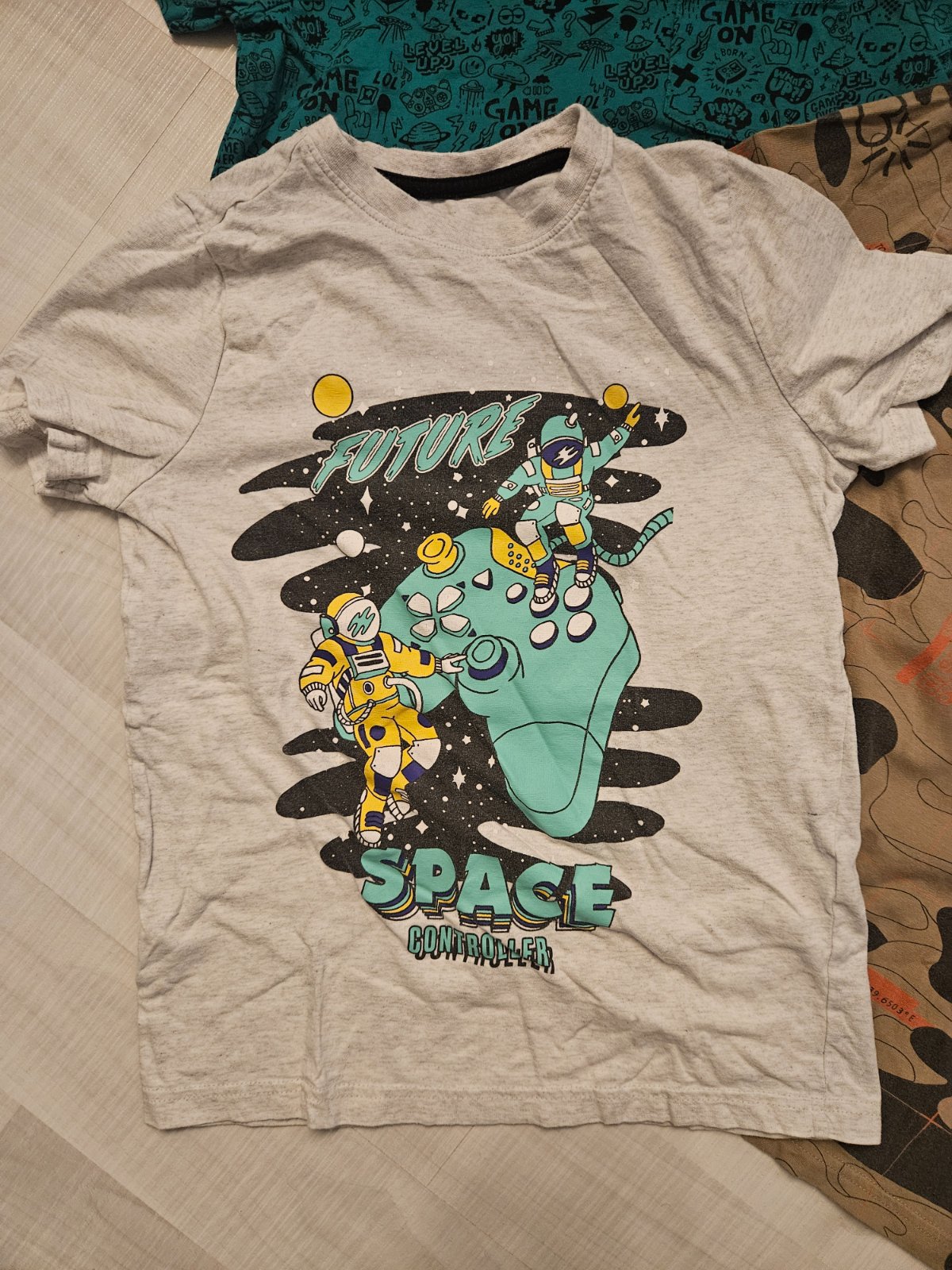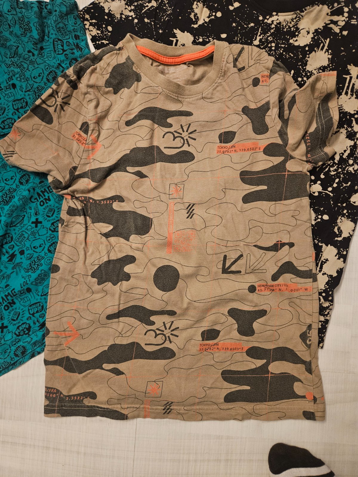 Veľmi kvalitné tričká dlhý rukáv, máličko nosené, kúpila som do školy pre Coronou a preto vôbec nevynosil a rýchlo z nich vyrástol so zeleným nápisom dĺžka 58 cm. Značka GT čierno biele dĺžka 61 cm...