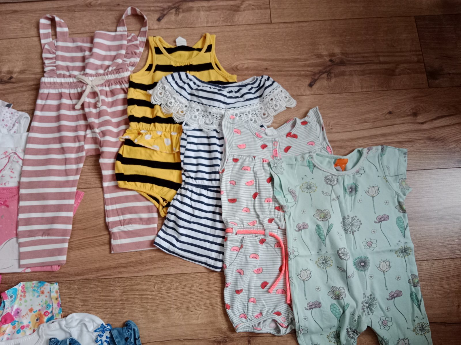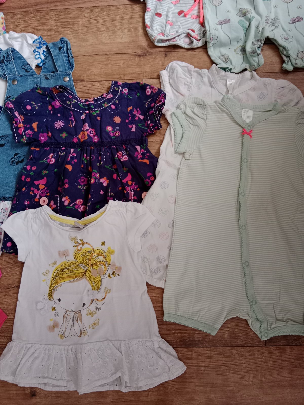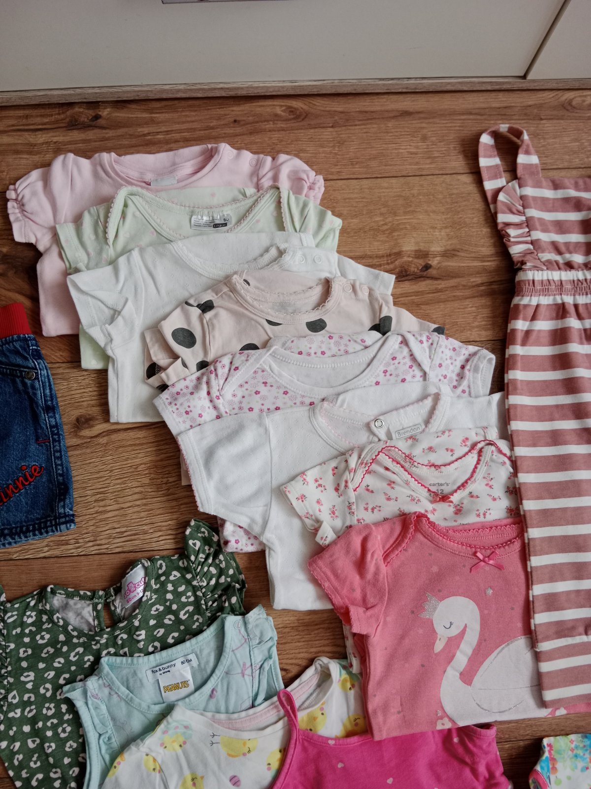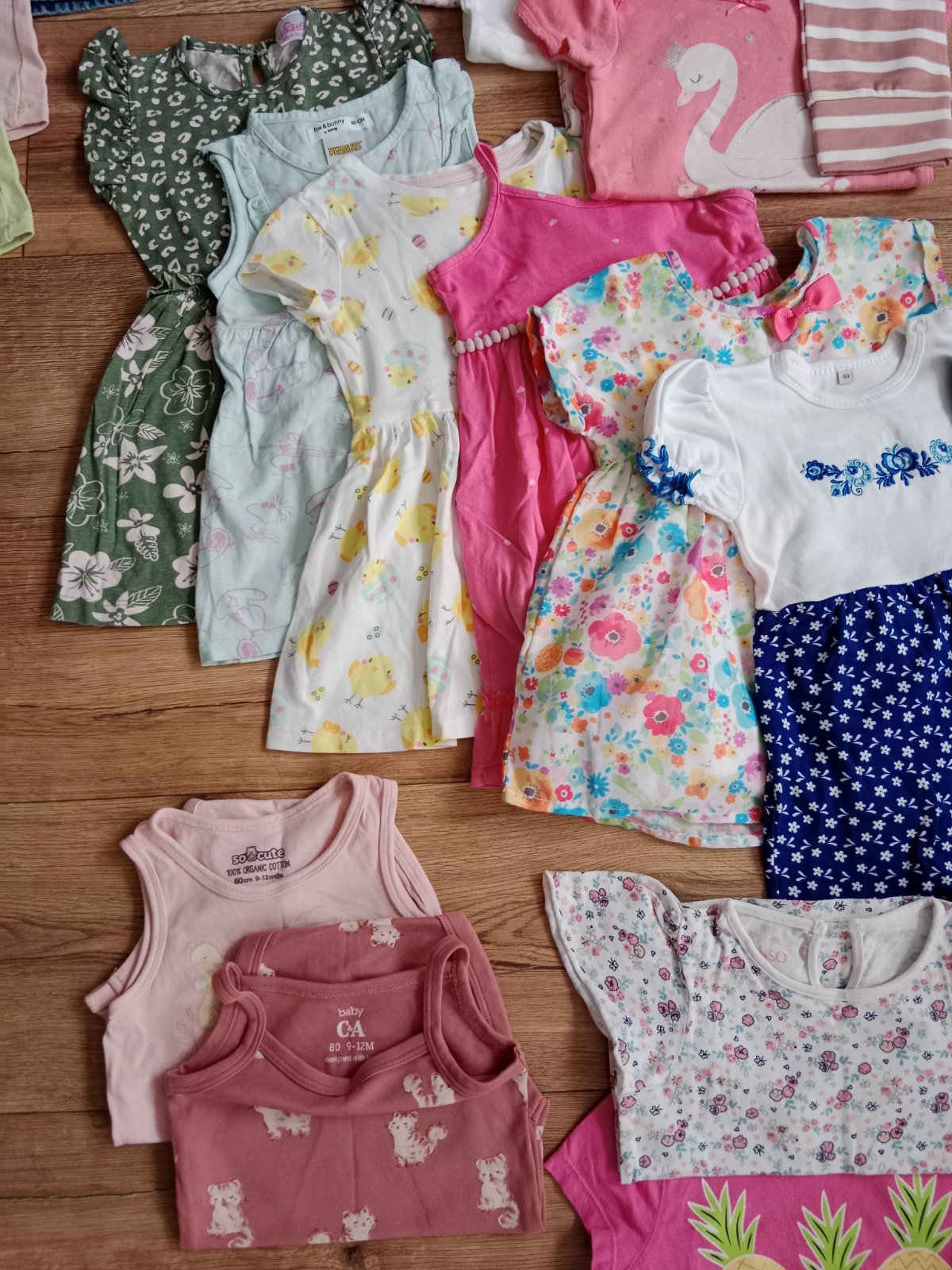 34 kúskov oblečenia, na niektorých píše veľkosť 86, ale sú menšie a teda nositeľné pri veľkosti 80. Oblečenie je vo veľmi dobrom stave a niektoré kúsky sú v dobrom stave. Všetko je bez dier. Asi na 3-4 kúskoch fliačik.