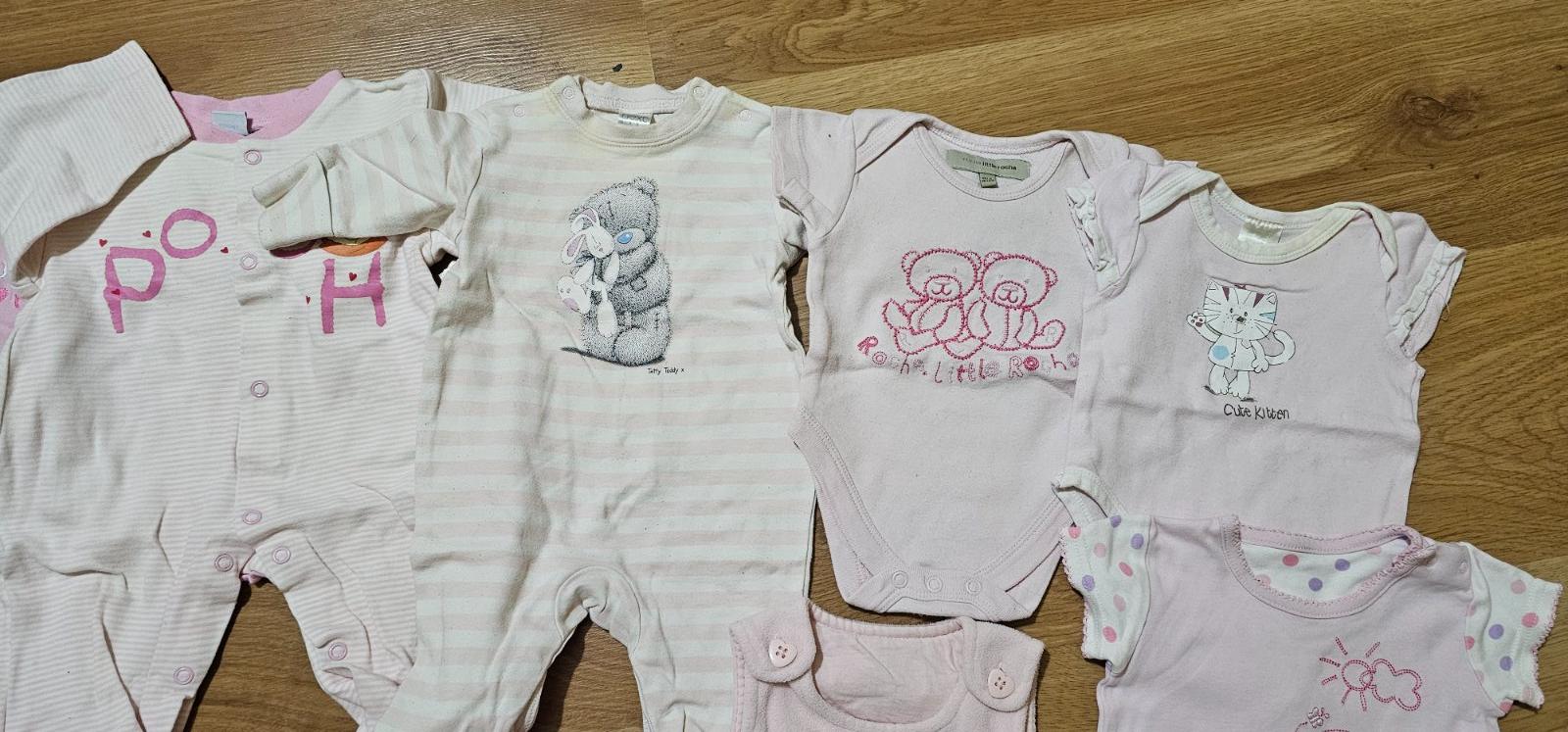 Dievčenský balik pre novorodenca mix oblečenia v zachovalom stave, niektore sú ako nové. Rôzne dupačky, body, tričká, šaty.. spolu 14 ks.