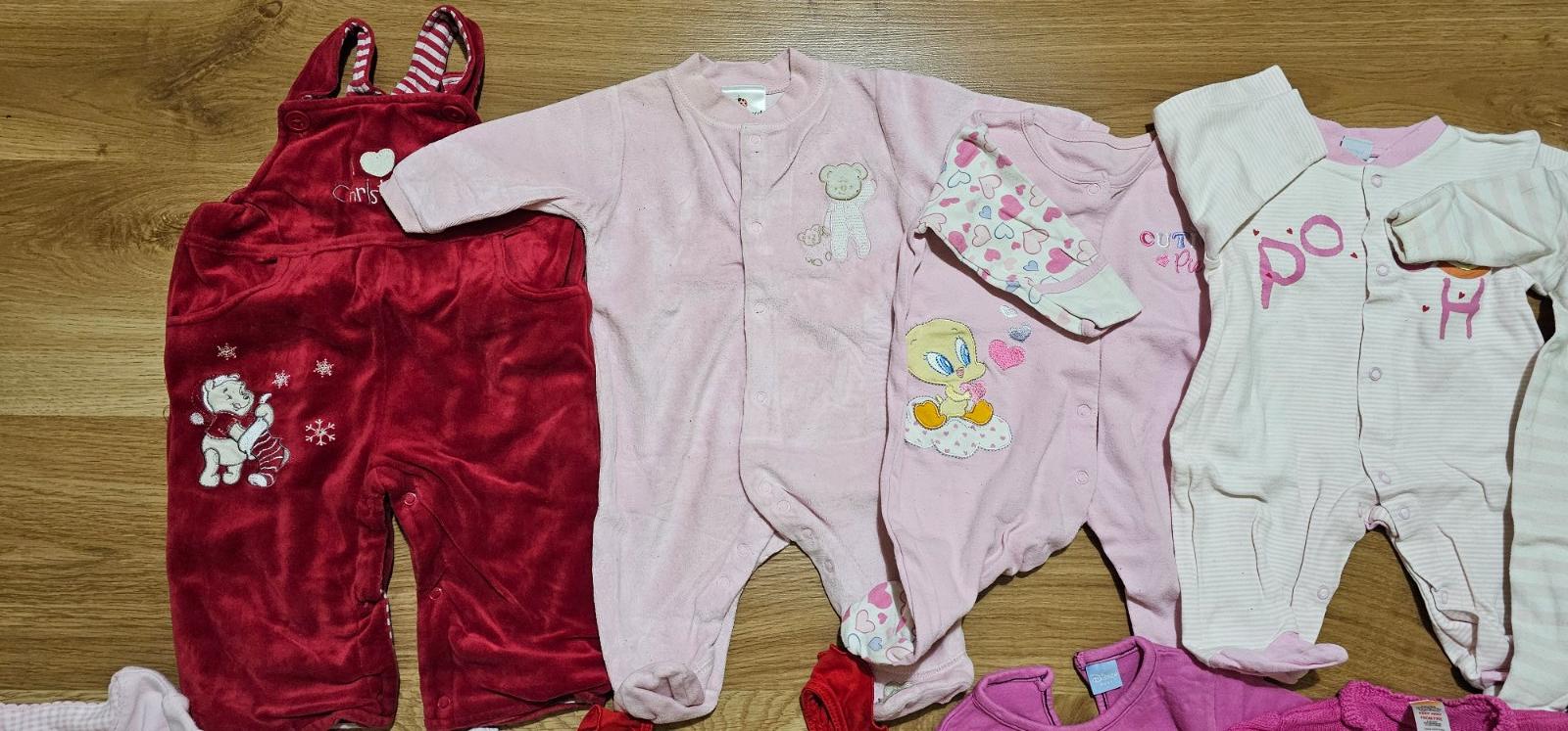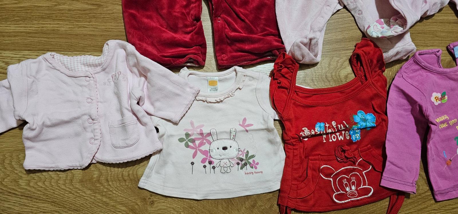 Balíček oblečenia označené v. 62, ale je to skôr 56. Obsahuje dupačky objednané z eshopu - vynikajúci stav; body s dlhým rukávom zn. Disney - vyblednuté farby a žmolky, inak bez závad. Pribaľujem k...