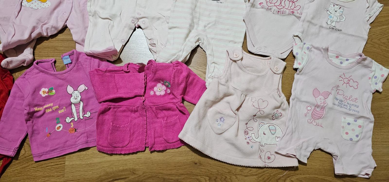 Mix oblečenia na 3-6 mesiacov - väčšina je 68, ale niektoré vecičky sú 62. Všetky sú nosený stav bez fľakov a bez dier, nosenie vidno na žmolkoch z prania a na žltých body popraskaná potlač - viď f...