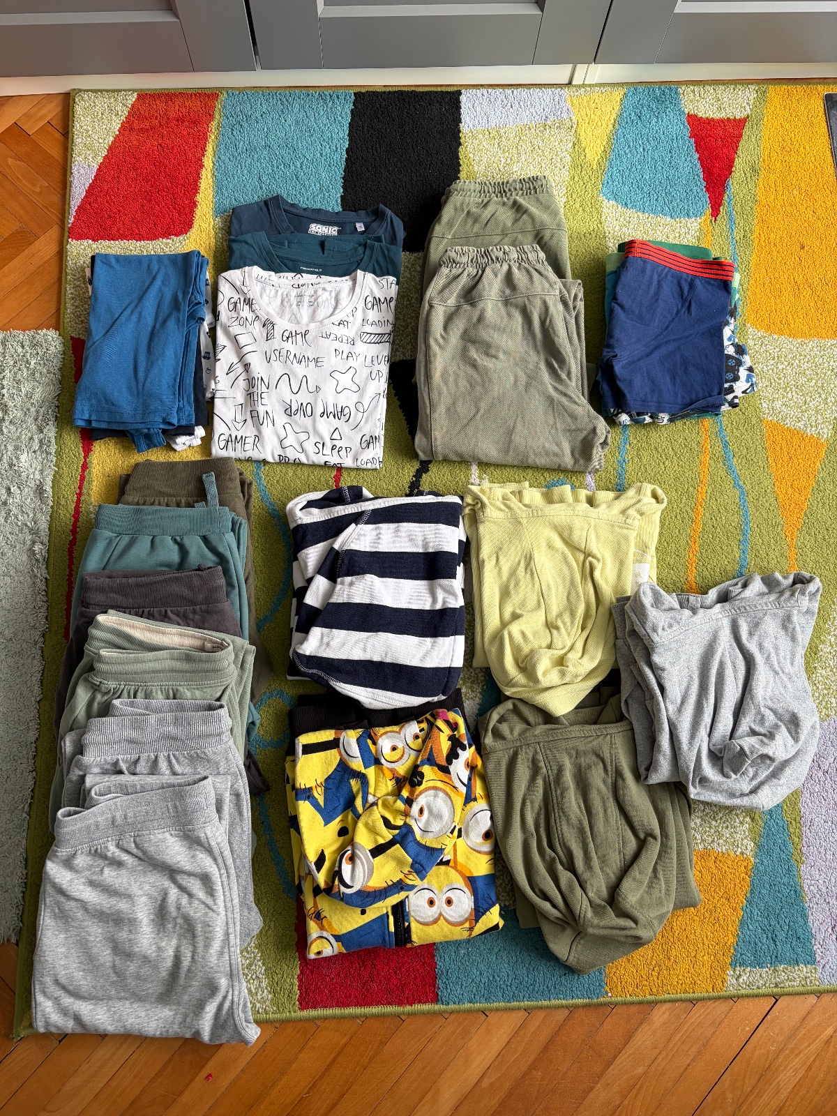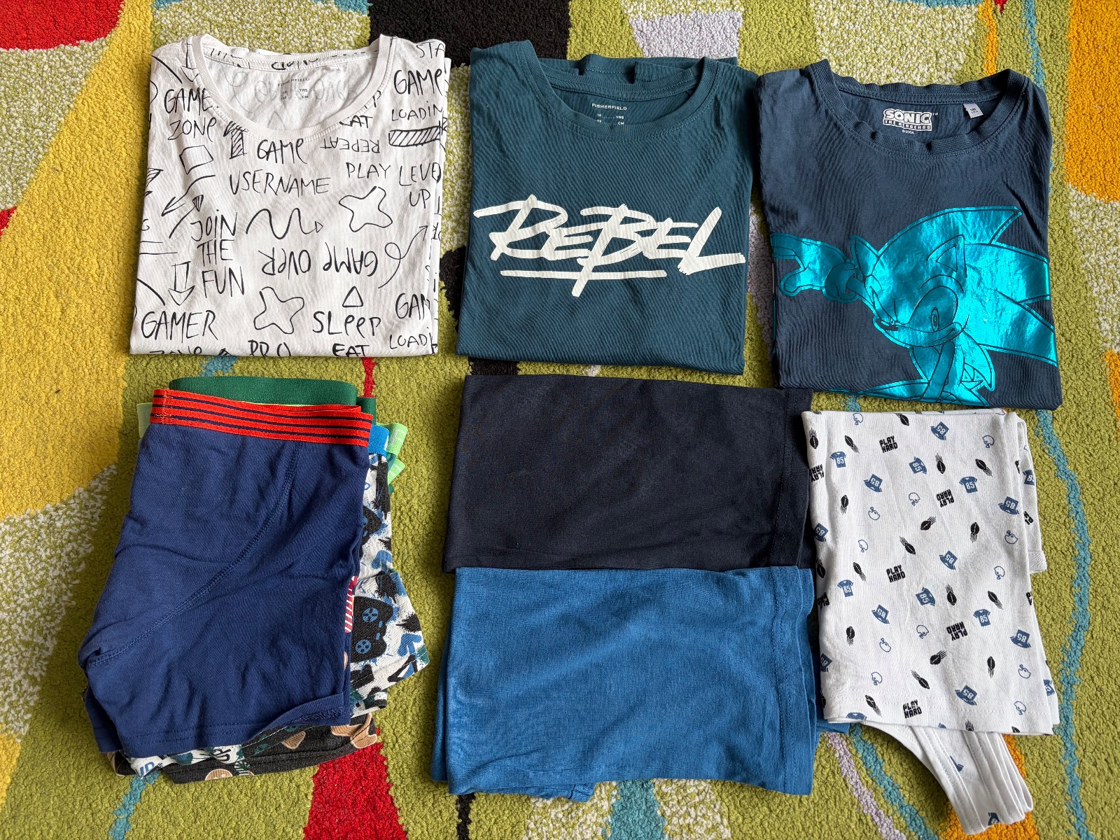 Balík oblečenia po synovi vo veľkosti 146/152. Niečo na doma, ostatné vhodné do školy. Cena spolu.