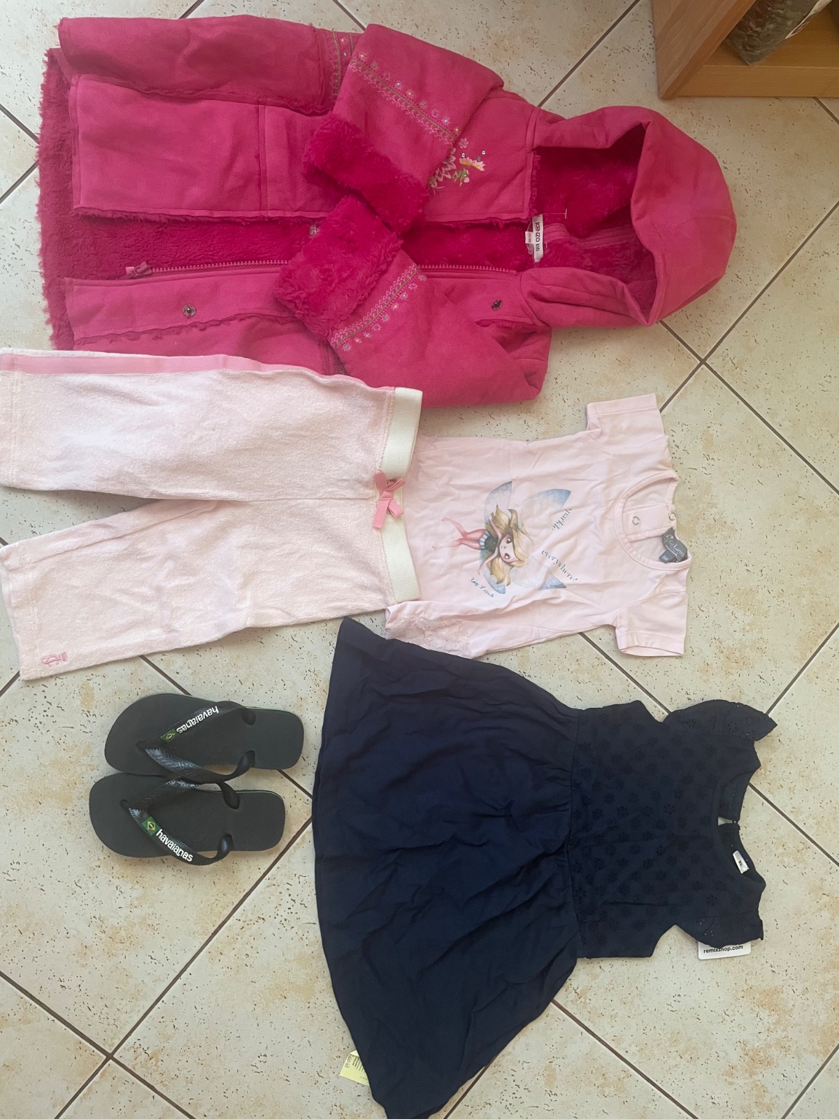 Ponúkam na predaj mix vecičiek je tam zimný komplet softselove nohavice rifle legíny teplákoch šaty vianočné šaty pre dievčatko v prípade záujmu doložím pančuchy legíny a trička do krabice značky l...