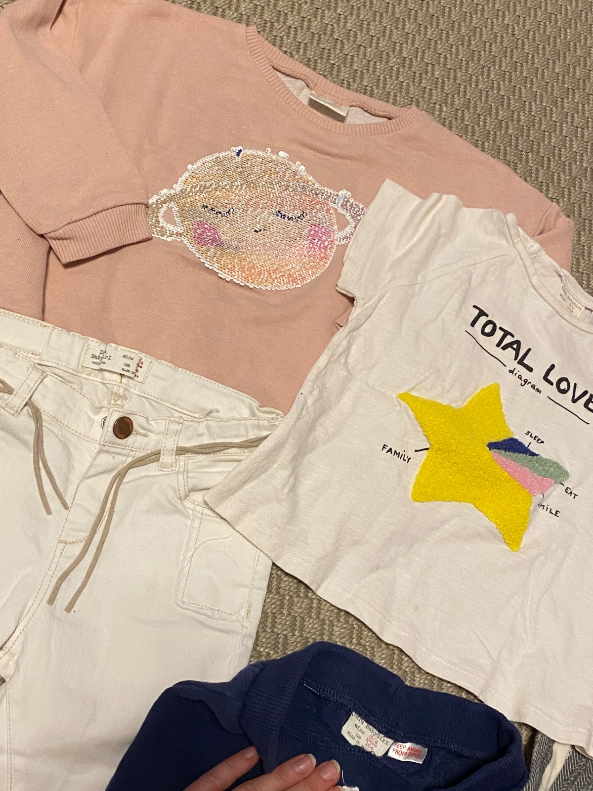 Vid foto. Hlavna foto plus kosielka na dolnych foto. . Stav velmi dobry. Na 4-5r. Veci nosene mojou dcerou ktora je narodena v juli. Cena plus posta. Pridala som veci tak preto som zmenila cenu.