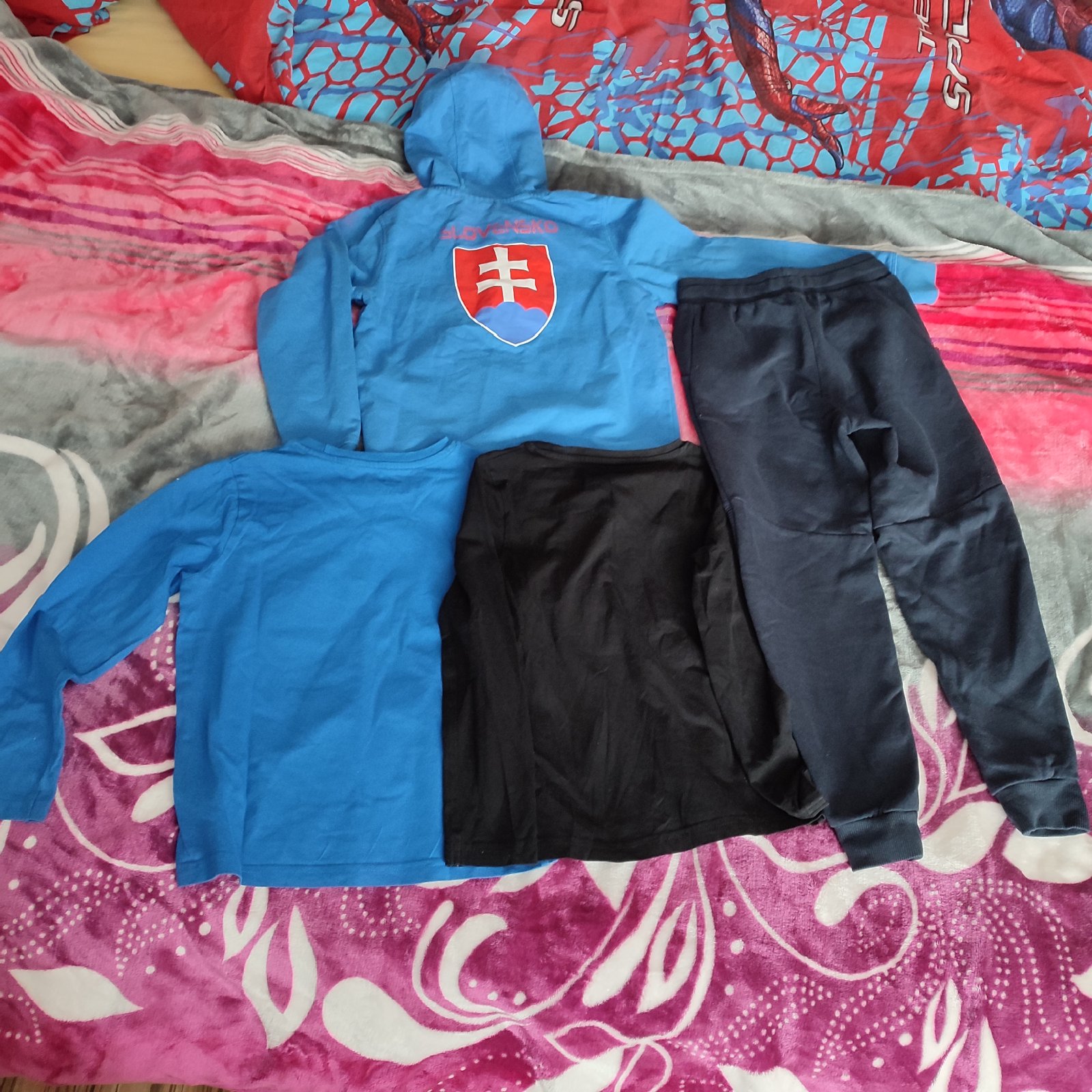 Vecičky nosené v dobrom stave, bez poškodenia, jedine na mikine je kaz, ten je od kúpy.