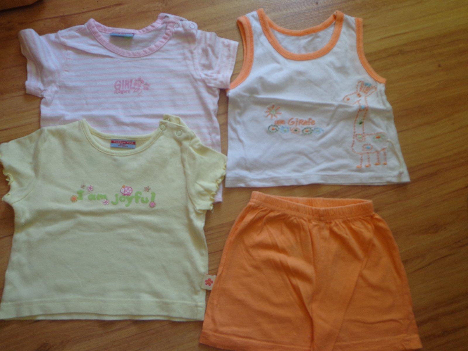 Krásny letný komplet vhodný aj pre chlapca aj pre dievča. Pekne riešená aplikácia na tielku, žirafe trčí chvost z tielka. Nosené ale ešte poslúži. Na tielku vzadu malinká dieročka, dá sa zašiť, nebude to vidieť. Na kraťasoch sú teraz som si všimla 2 čierne malé bodky, možno sa dajú vyprať a ešte na kúsočku trčí nitka z gumy, tiež sa dá zašiť. Stav zohľadnený v cene. Cena: 2 Eur, veľkosť 74, značka C&A