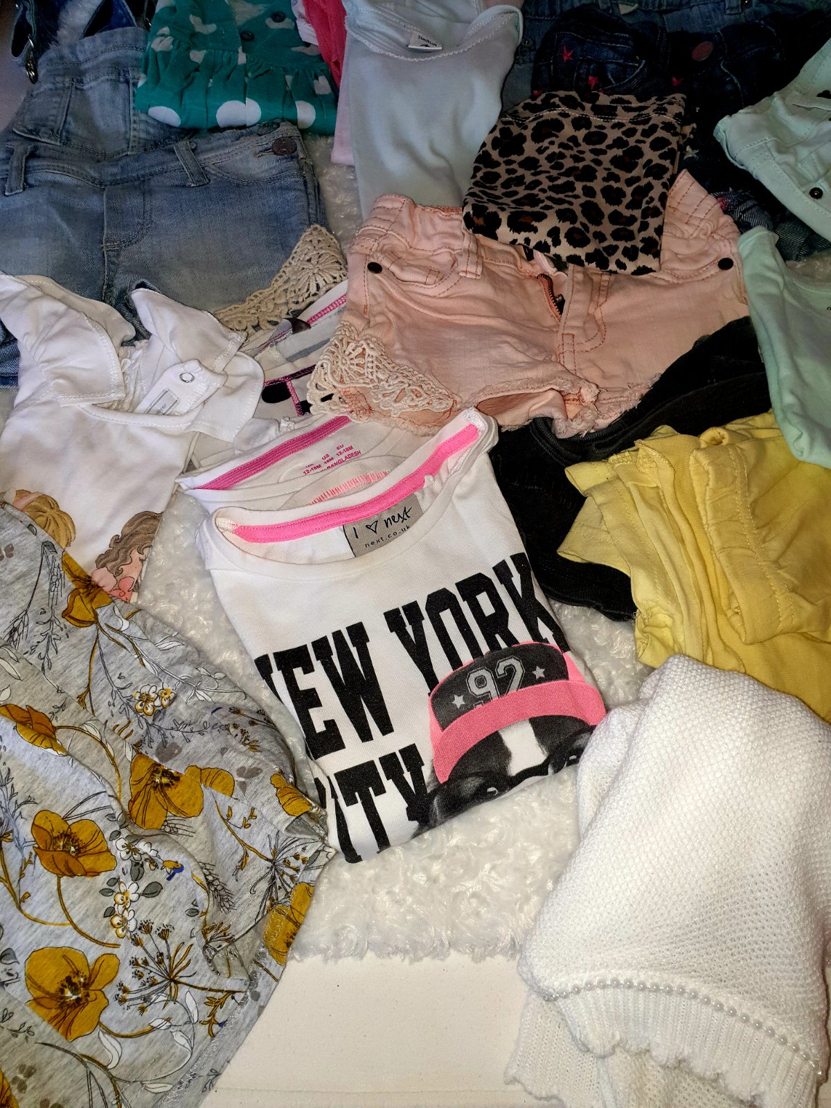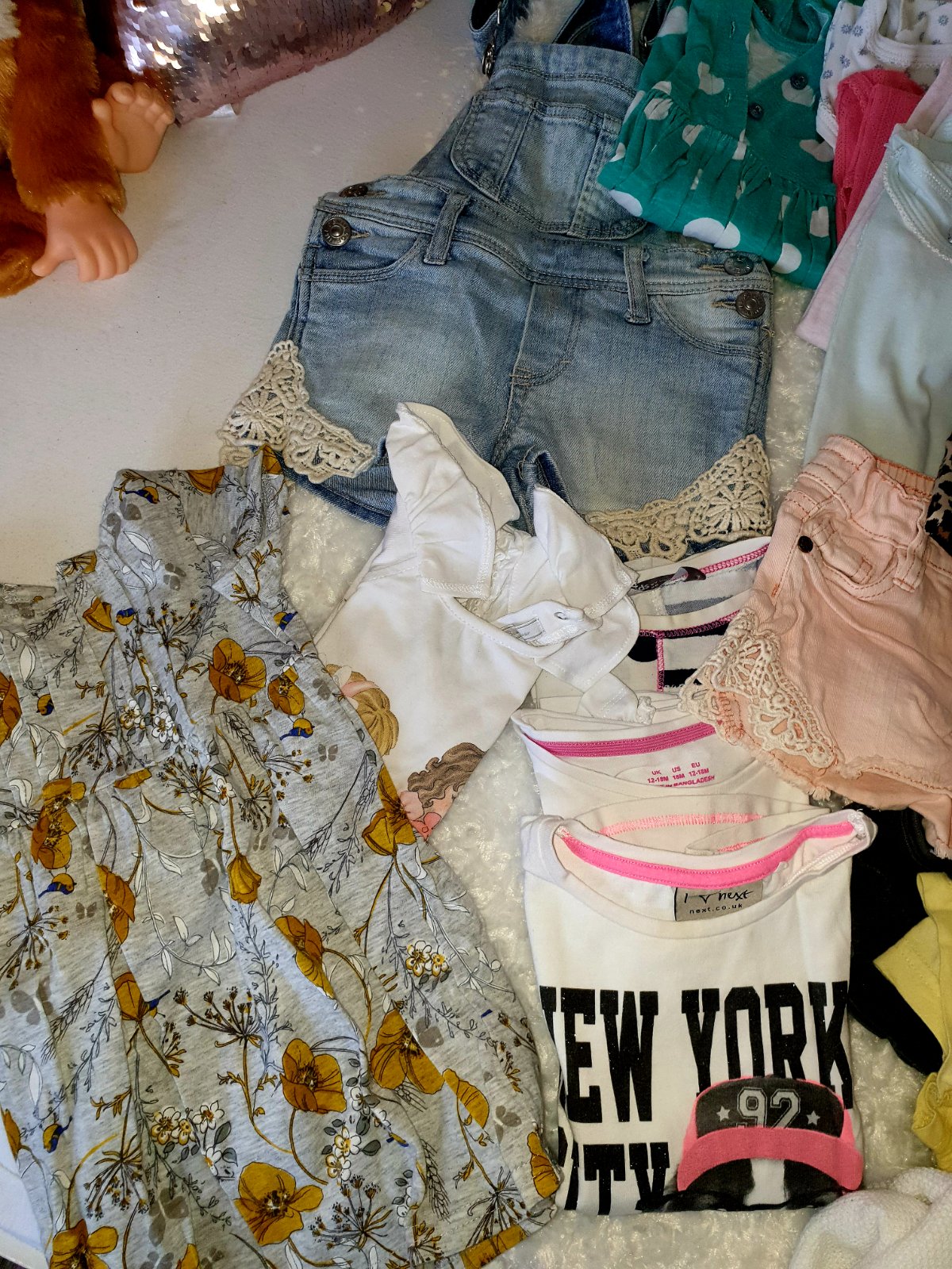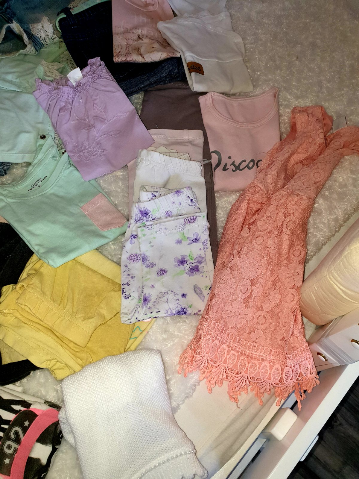 Predam balik styloveho oblecenia pre dievcatko znacky Next,H&M,lindex,reserved,Mayoral,Petit Bateau...Balik obsahuje 3 x saty, 6 x riflove kratase, 1x kratase na traky, 3 3/4 leginy,1 dlhe, 4x body s kratkym,svetrik s dlhym rukavom,tielockove saty s maslickami,11 x tricko s kratkym..predavam len spolu,niektore veci ako nove,ine nosene,je aj vidiet (tie skor myslene ako gratis,cena je za pekne veci,pc bola ovela vyssia), my sme nosili tak,ked malinka mala cca 2 roky, cisla su od 74-80 (kratase,lebo tie nam mensie pasovali) rozne do 86-92 (tricka s kratkym)...veci nepremeriavam,je to pre dievcatko cca 2 roky,sezona leto :), cena je fakt super