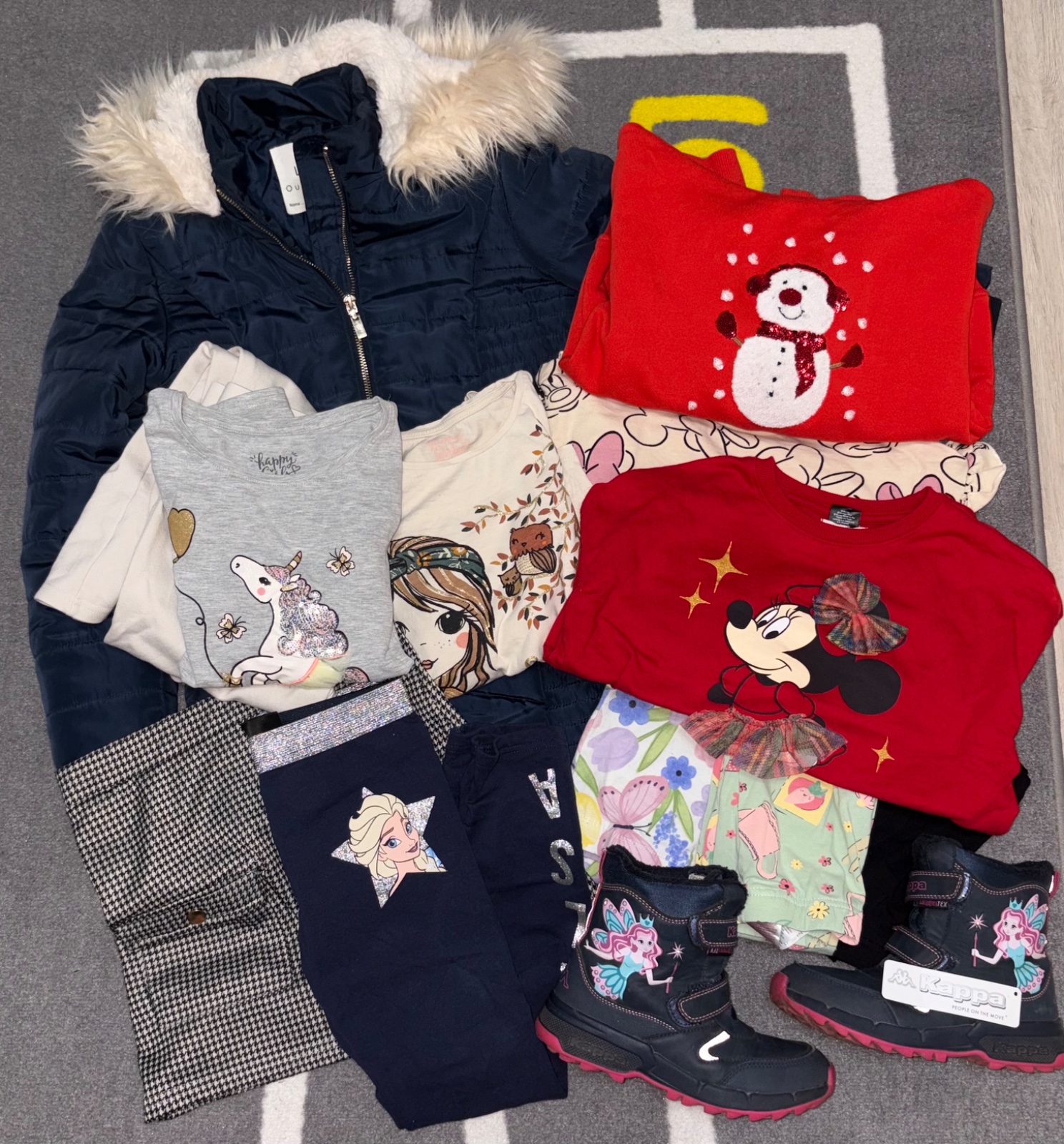 Predám balík oblečenia pre dievčatko v.128/134 nositelné od v.128 v top stave.Balík obsahuje: