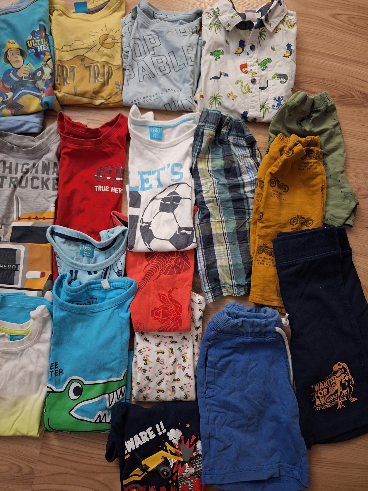 Veľkosť 110/116 1x plátené kraťasy 3x tričko krátky rukáv