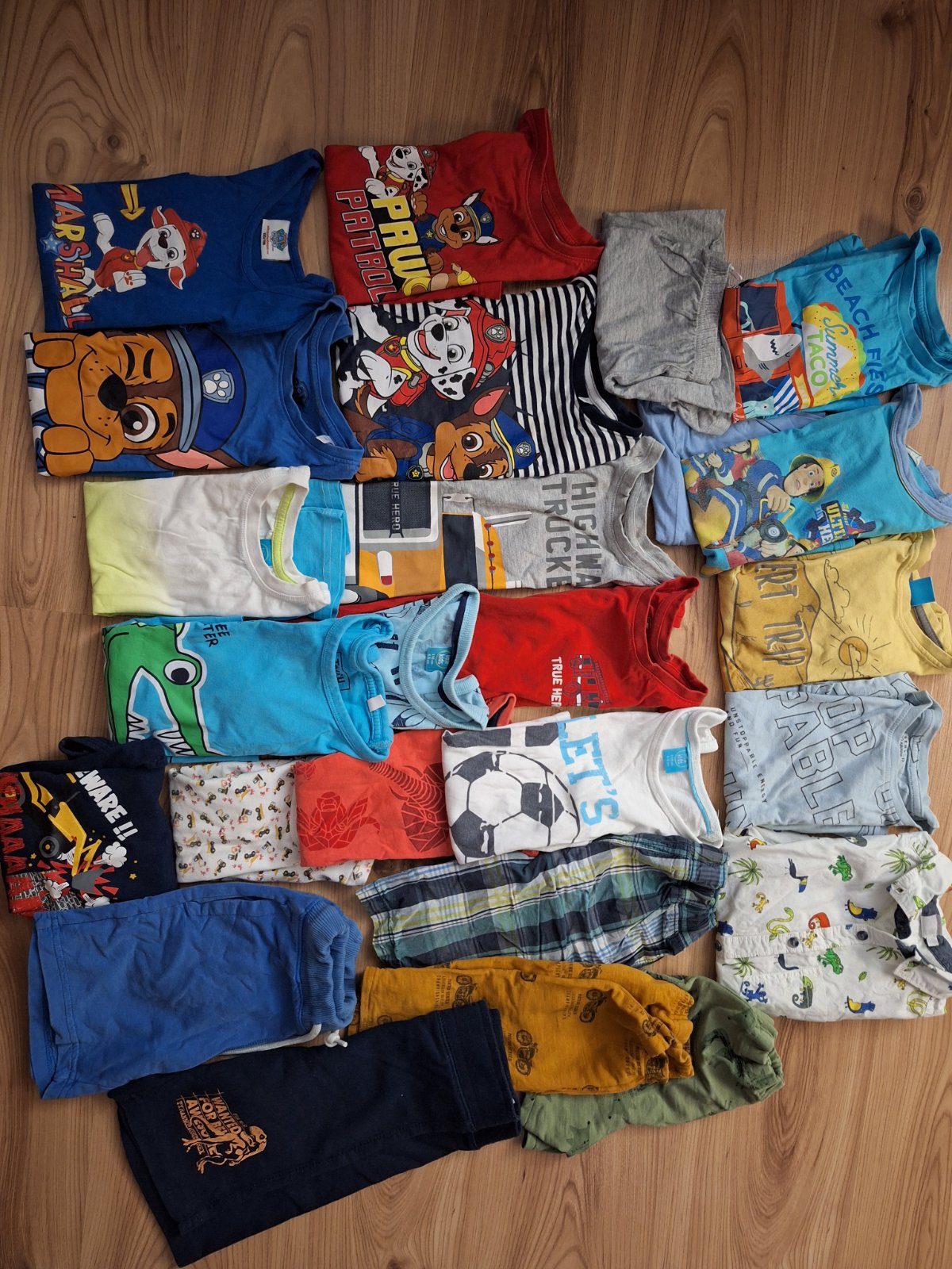 Balík letného oblečenia, veľkosť 110/116 2x kraťasy 4x tričko krátky rukáv 1x tielko Spiderman