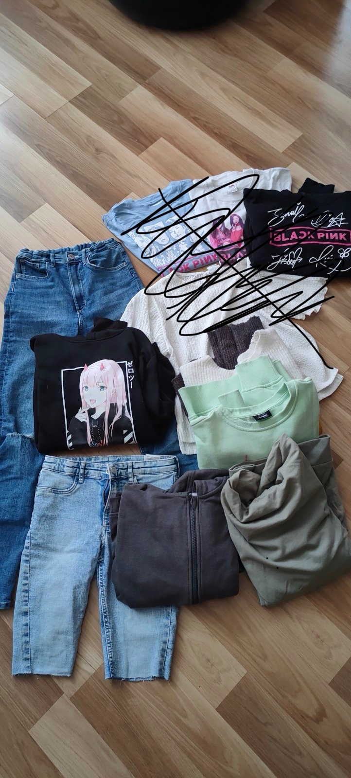 Predám balík oblečenia veľkostne 134/140 /146,len spolu balík je vhodný na donosenie nie do školy skôr na dvor, 1x sveter predĺžený, 6x tričká s krátkym rukávom , 1x legíny , 1x mikina,cena za všet...