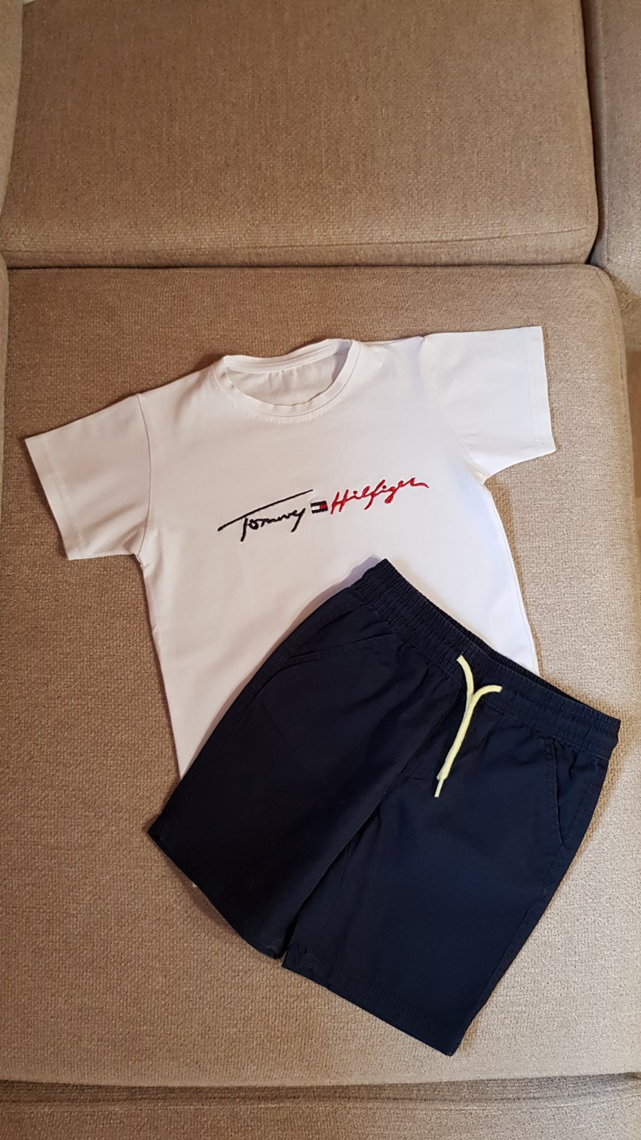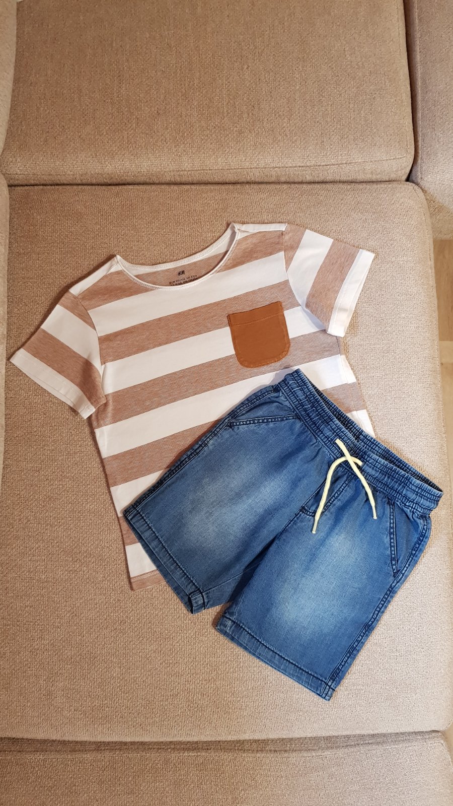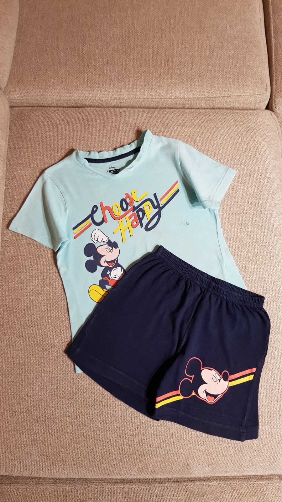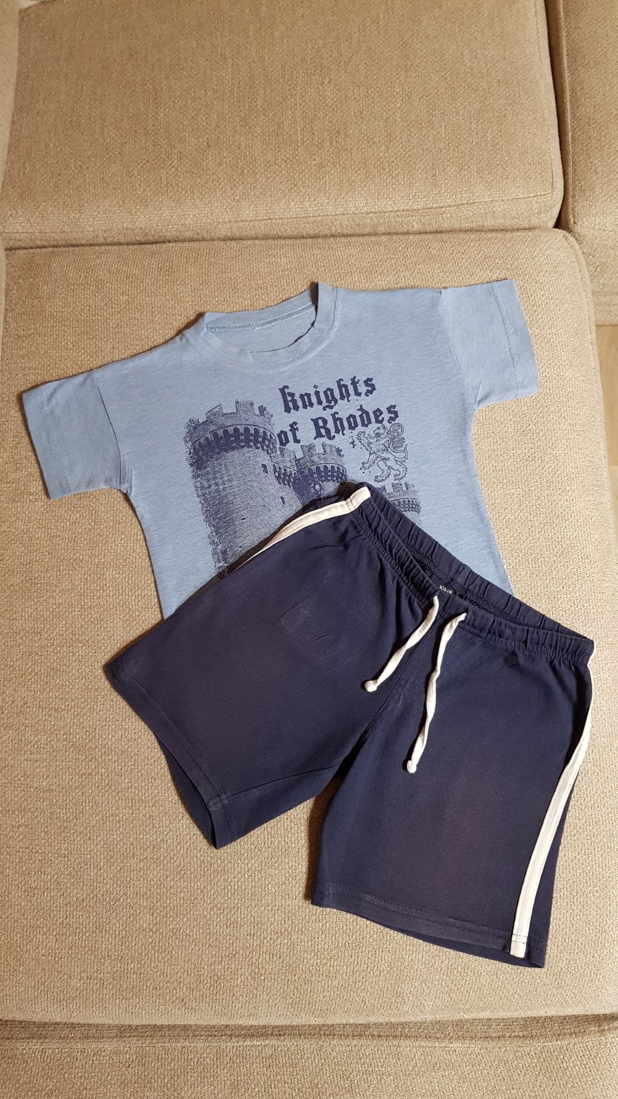 Balík letného oblečenia (23 ks - 12 tričiek a 11 kraťasov) pre chlapca, veľkosti písané rôzne (od 98-116), ale veľkostne to syn nosil od 104 do 116 (do minulej sezóny) naraz, teraz mu to je už tesné, a prikrátke (pre info má 6,5 roka a prechádzame na veľkosť 122-128). Prvých 5 "súprav" nosil do spoločnosti, takže sporadicky, sú vhodné stále medzi ľudí okrem krémového trička (tam mi práčka spravila dierky) a trička so žralokom (dva mini fliačiky pri krku, ktoré nejdú vyprať). Tričká sa dajú zameniť ale s inými - ďalšie 2 "súpravy" (s dinosaurom a červené mickey) boli nosené na výlety - sú bez chýb, vhodné takisto do spoločnosti. Zvyšné 4 "súpravy" a tričko boli nosené na doma - na donosenie. Do balíka aktuálne ešte pridávam súpravu Labková patrola - bez pošodení. Cena spolu 38 € + pošta.