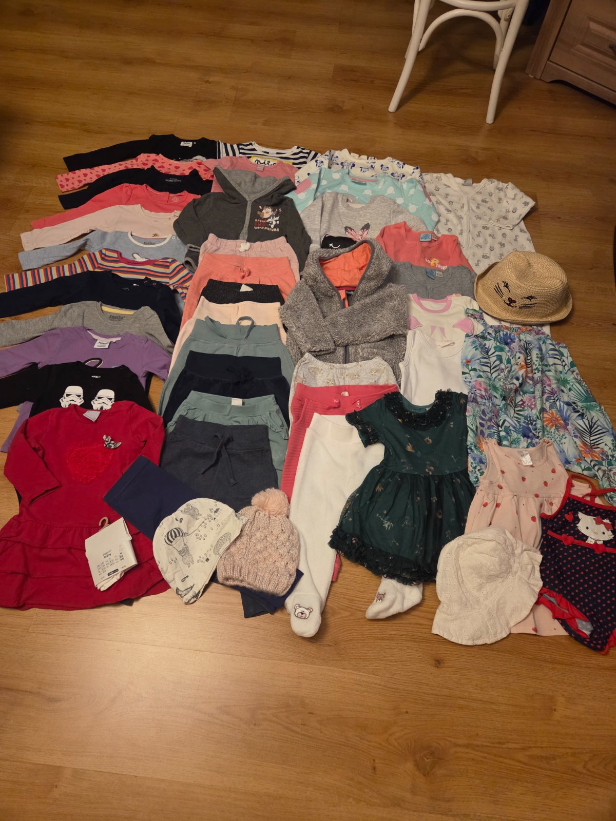 Ponúkam balík oblečenia pre dievčatko 74-80 v peknom stave. 10 ks tričko dlhý rukáv, 2 ks krátky rukáv, 3 ks body, mikina hrubá, tenká, 3 mikiny cez hlavu, 11 js tepláky, legíny, 2 ks pyžamo, 1 ks spací vak, plavky, overal letný, teplákovinové šaty, čiapky, klobúčiky, pančušky, elegantné šaty. Cena spolu 15,00€ + pošta