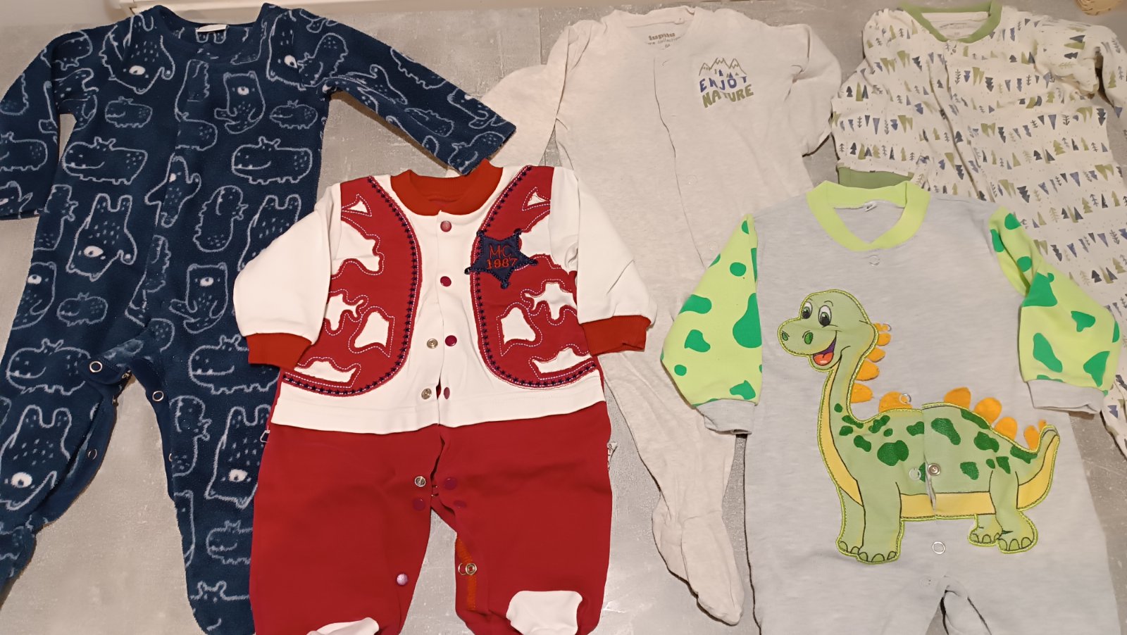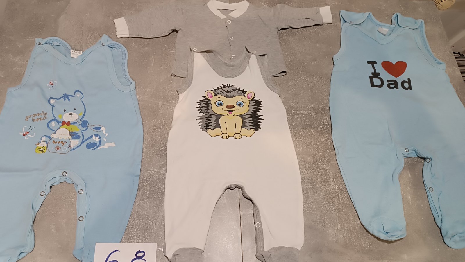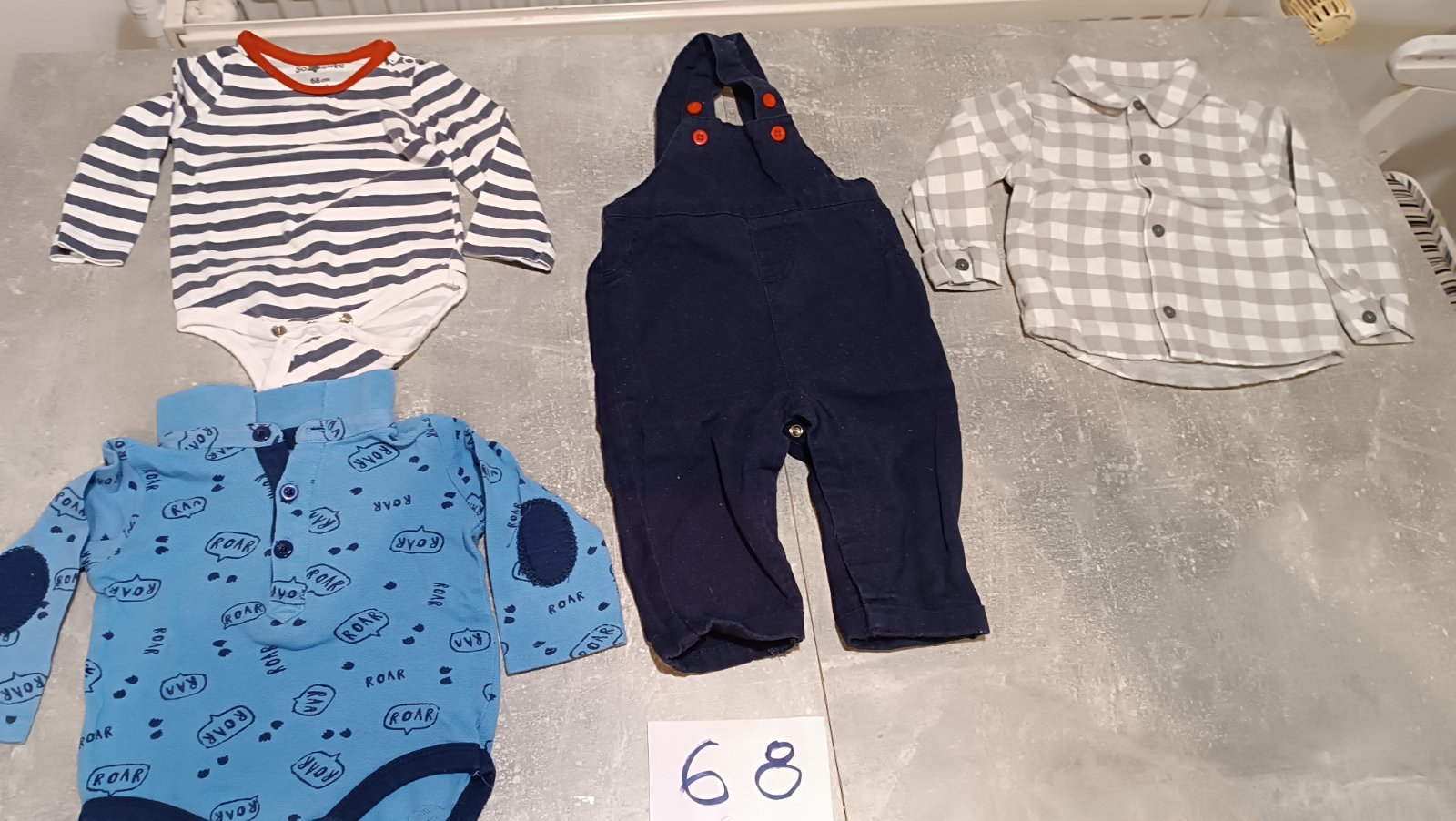Všetko veľmi pekný stav, značka F&F,v. 6 - 9mesiacov. Obsahuje overaly, klobúčiky a jednu súpravu body s rifľovými kraťaskami.