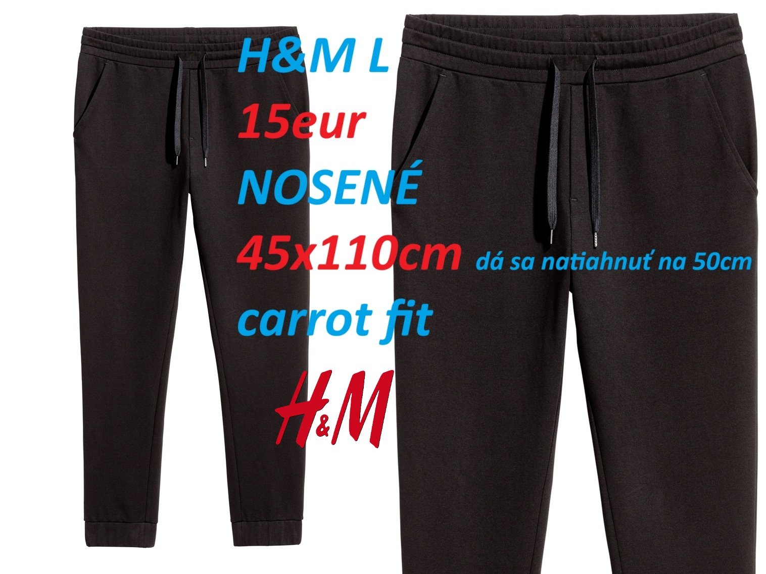 Predám pánske tepláky H&M a Gate, veľkosť L a XL. Cena 13eur a 15eur za jedny.