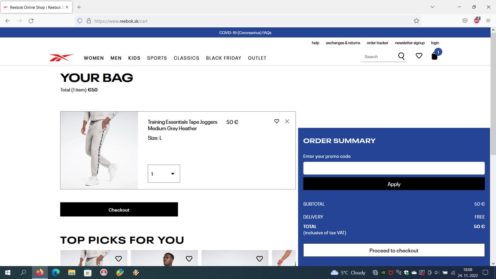 Ďalej predám pánske tepláky Reebok, veľkosť L. Cena 35eur za jedny.