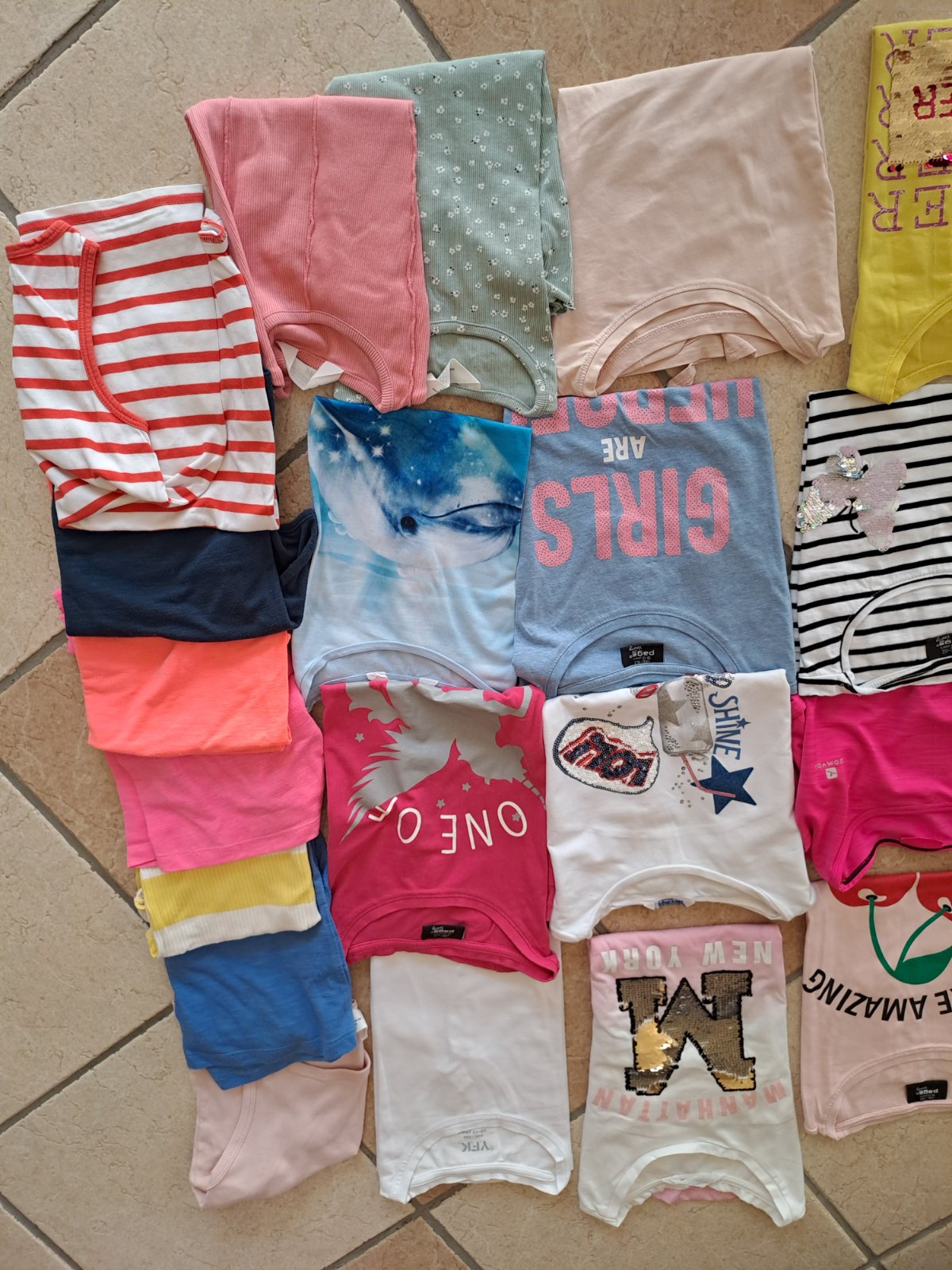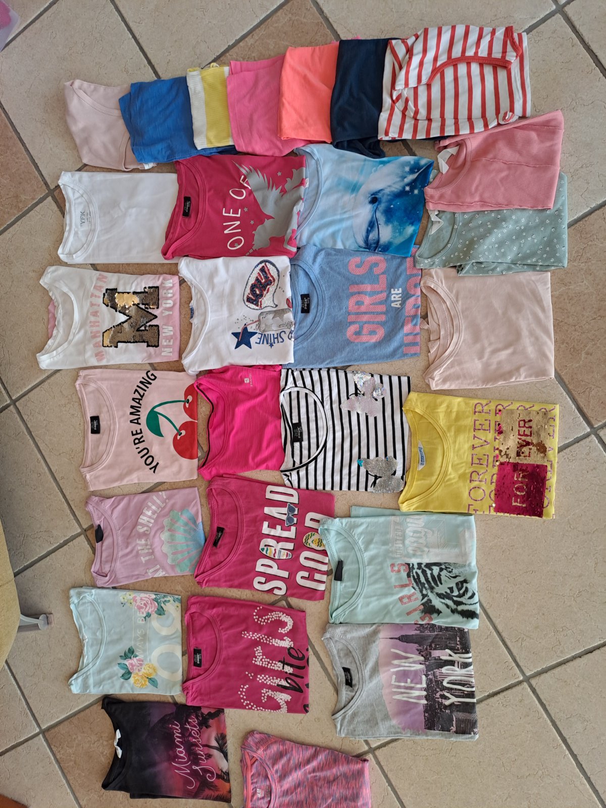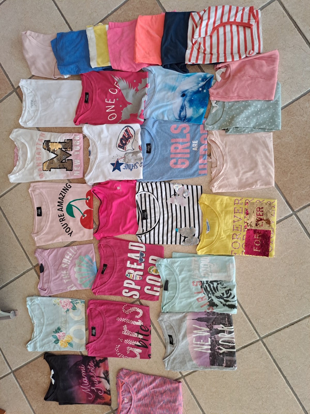 Velkosť 146-152, tričká s rukávom a bez rukáv, 28 ks