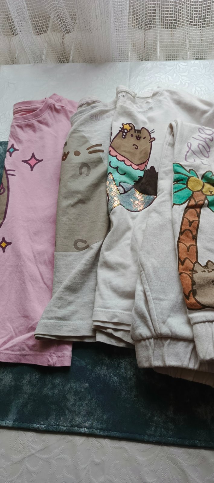 Balík oblečenia veľkosť 134/140. Všetko podľa fotiek, mikiny, tričká, pyžamá,rifle. Nosené, zachovalé. Mikiny na zips a tričká biele nosené menej, mikiny cez hlavu jemné zmolky. Rifle 1 x zdarma,p...
