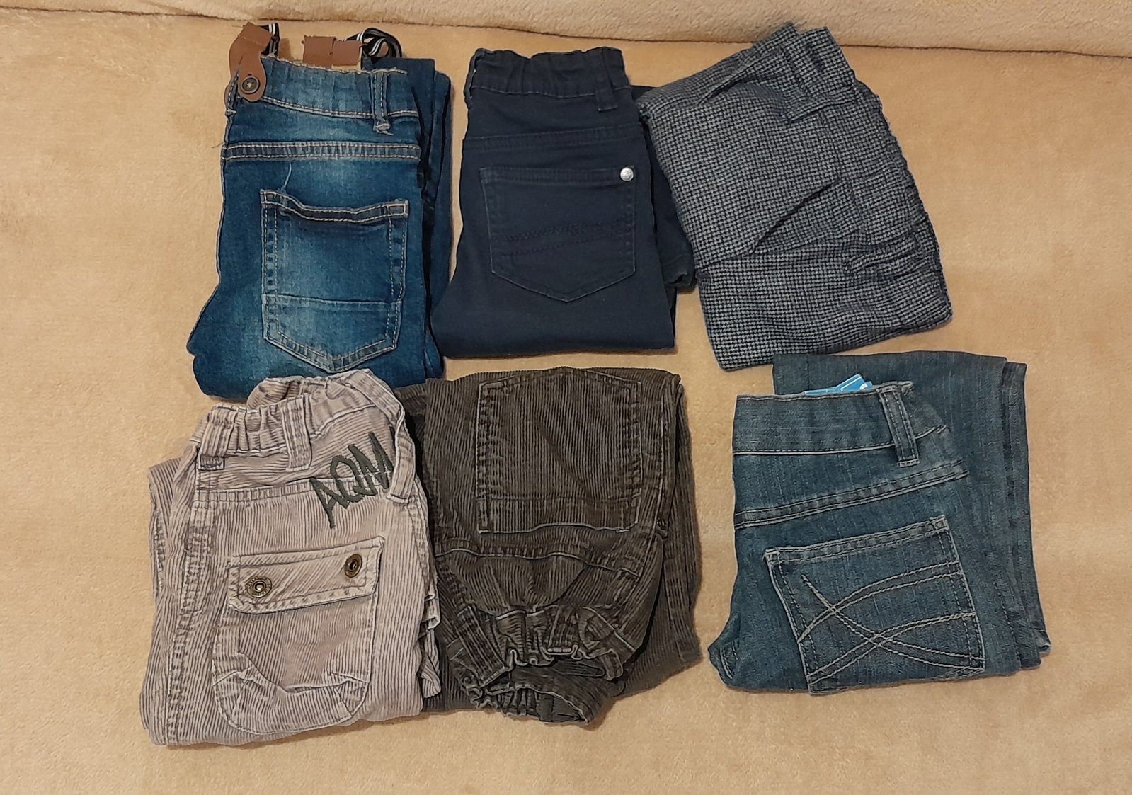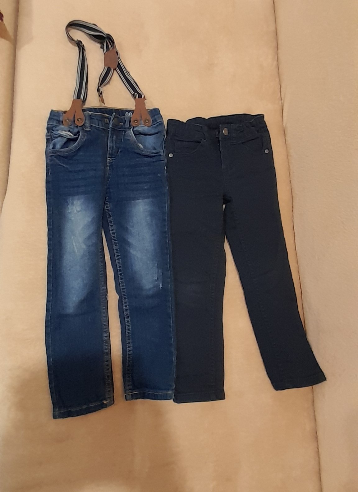 2ks slim rifle, 1ks úplne nové rifle Dopo Dopo, 2ks mančestrove nohavice, 1ks spoločenské nohavice. Posielam cez Packetu za 3,40€ alebo osobný odber.