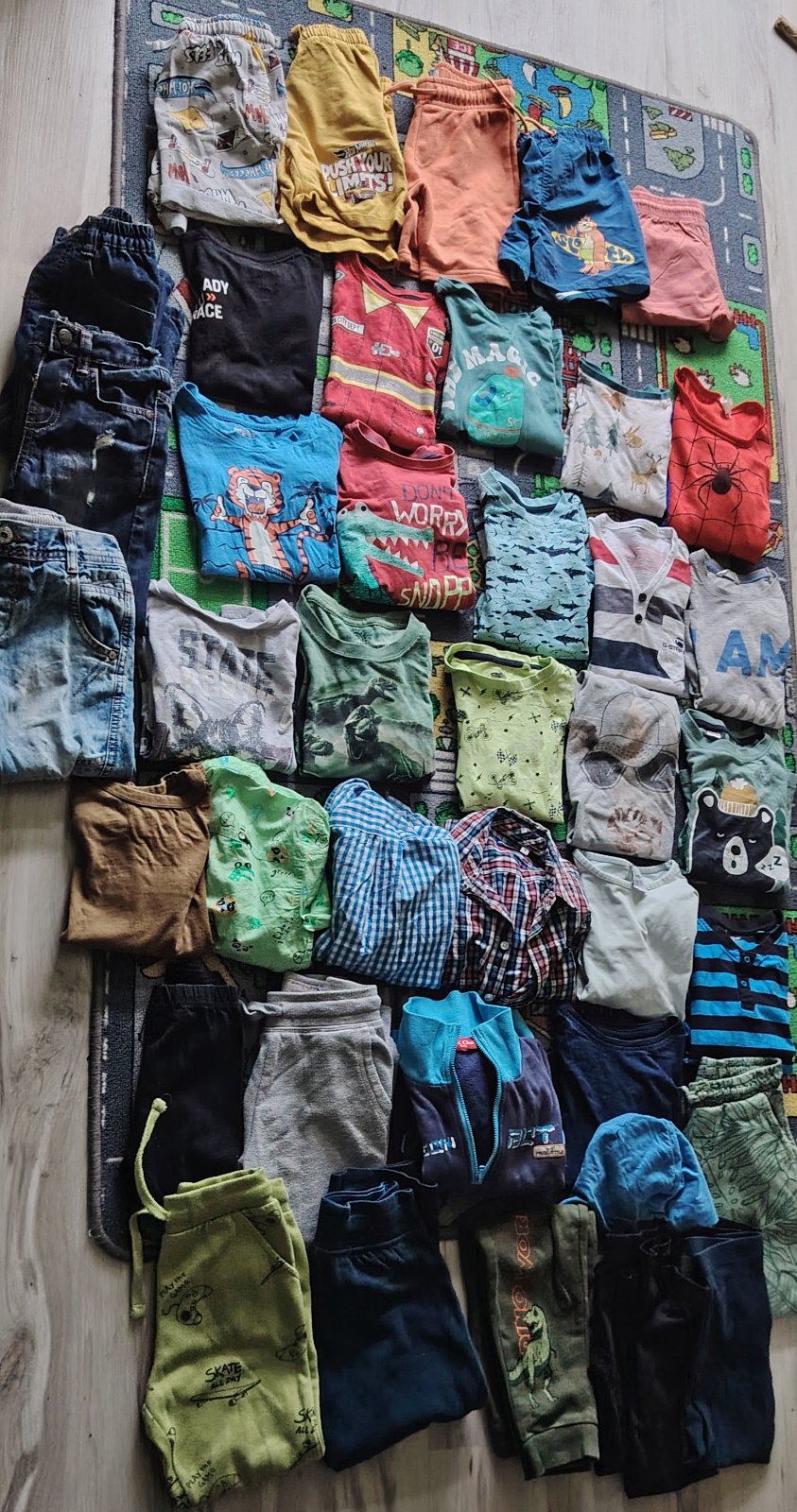 Tričko dlhý rukáv 9x, pyžamové tričko,kostymove tricko Spiderman, tričko krátky rukáv 8x, kraťasy 5x, košeľa 2x, košeľa krátky rukáv,3x rifle,5x tepláky,mikina,4x legíny, čiapka ,oblecenie aj na doma aj do škôlky