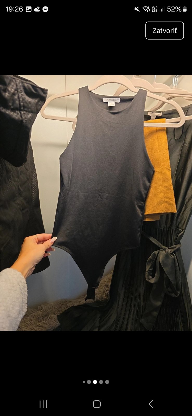 H&M lesklé šaty, Amisu lesklé body, športová bunda Colours, sukňa mäkká koža Kaiserjäger, rifle 28 Denim