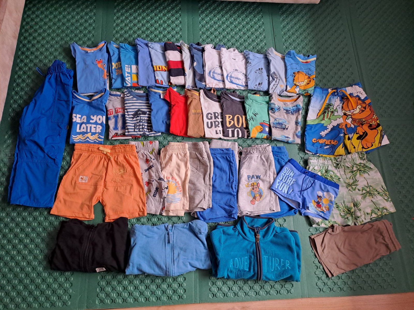 Predám balík oblečenia pre chlapca veľkosti 104 a 110 nosenom peknom stave . Tričká krátky rukáv . Tielka . Kraťasky aj dlhé gate šuštiakové. A mikinky . plavky . Spolu 14 eur + pošta .