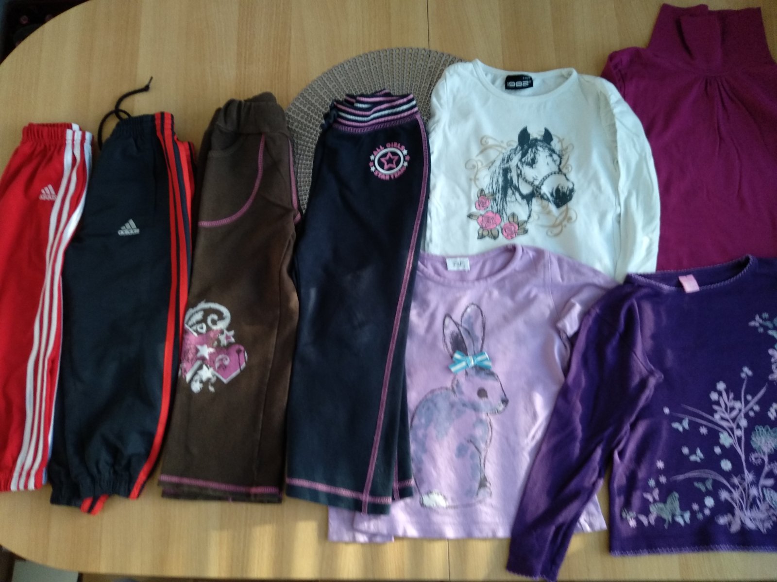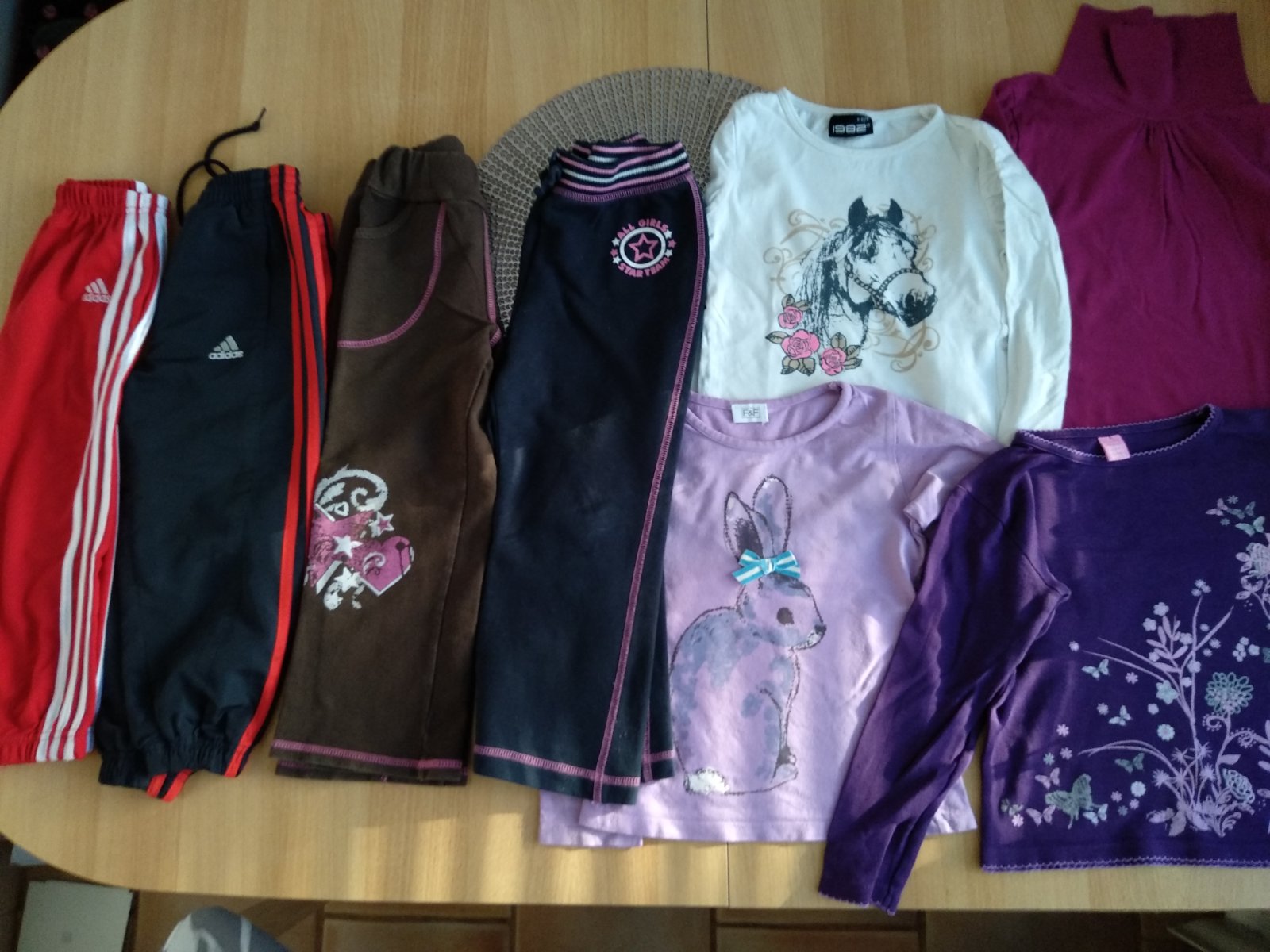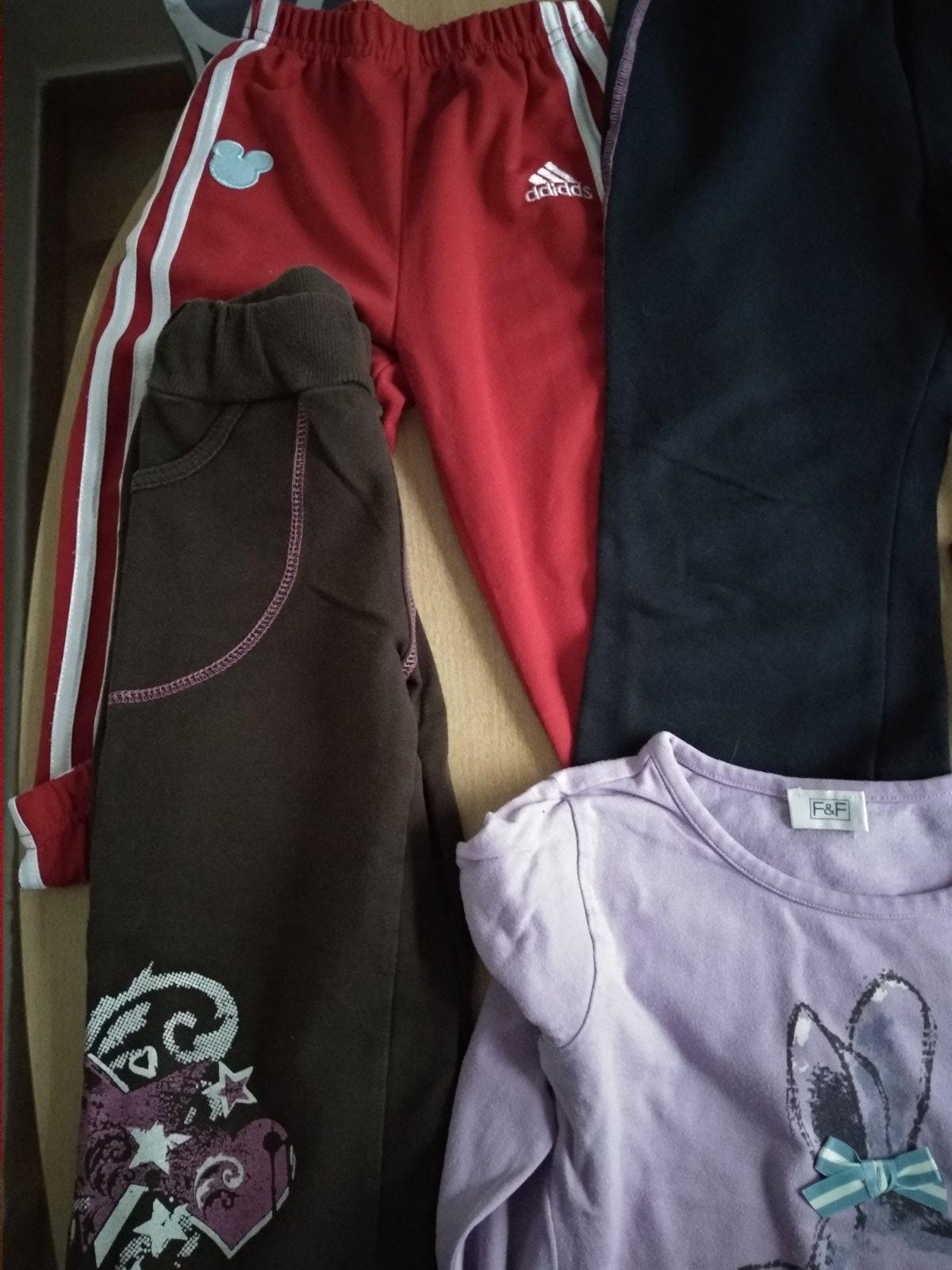 Balík jesenného oblečenia na 4-5 rokov, 110, obsahuje 3 tepláky,(tepláky a sustiaky Adidas nie sú originál,cake sú dobré, kvalitne) 3 tričká s dlhým rukávom a jeden rolák. Cena spolu
