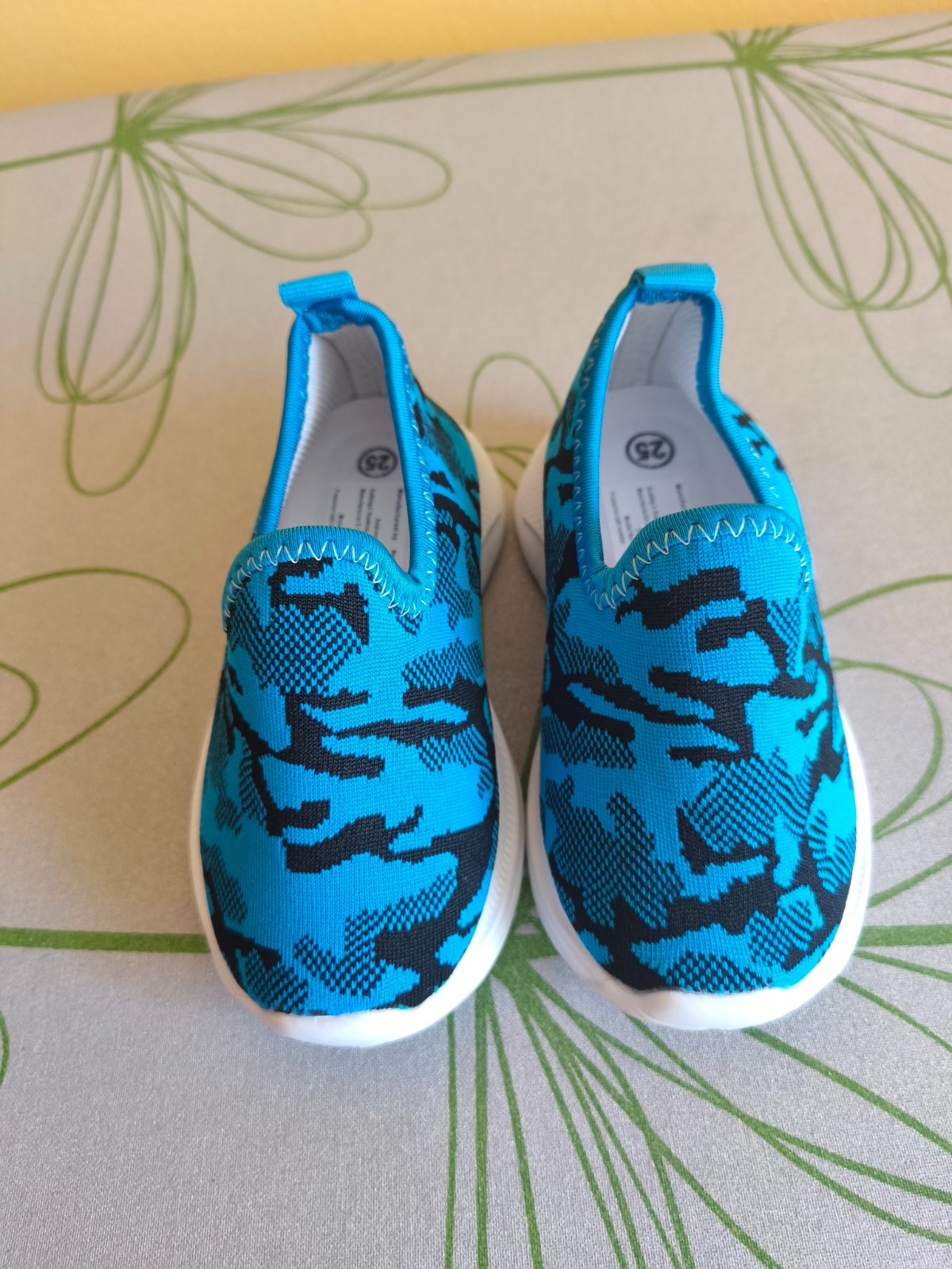 Úplne nové krásne modré maskáčové papučky vo veľkosti 25.