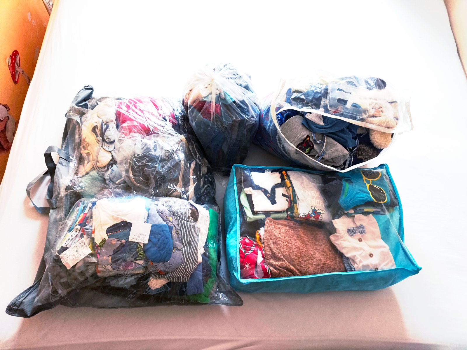 Tento celý veľký balík oblečenia je za 85€ a balík obuvi za 15€, dokopy spolu teda 100€.