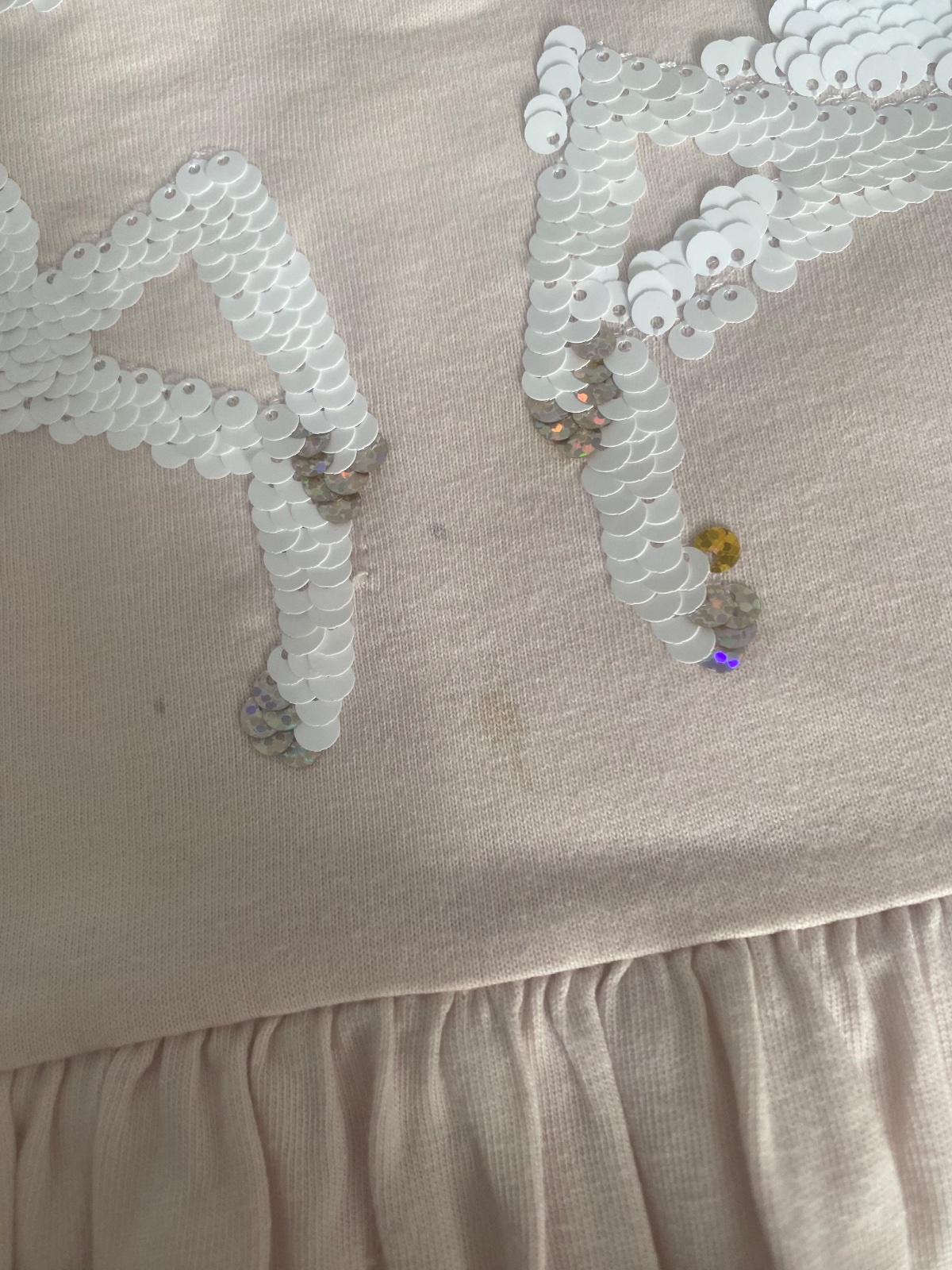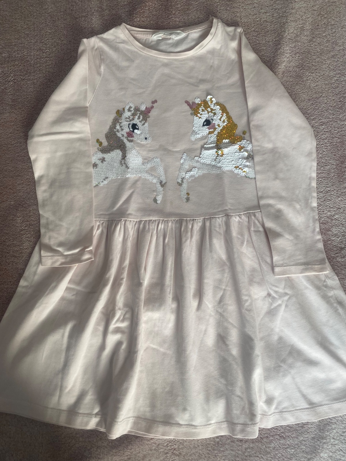Ružové saty s unicornom majú slvrnku medzi konikmi a vzadu na sukni inak latka je ako nová stačí tam dať nejaké filtre alebo násivku