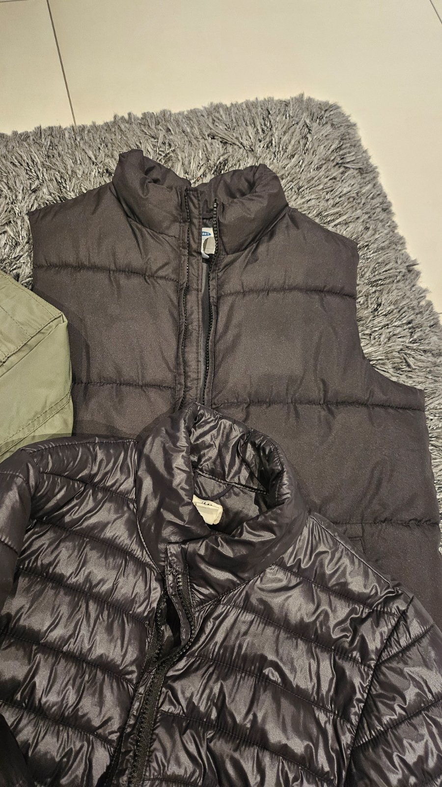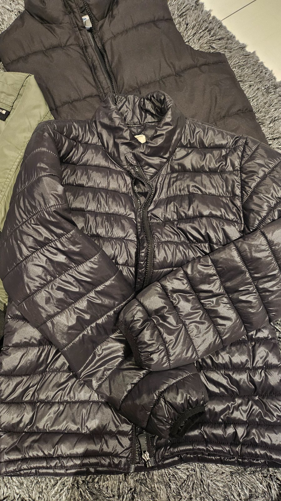 1x vesta old navy, 2x bunda h&m. Vsetko velkost 158-164 aj to sedi. Vhodne na jar, jesen. Obe bundy su mierne zateplene top stav. Na bombere je kapucna odnimatelna, cierna bez kapucne. Vesta zateplena. Predam iba spolu.