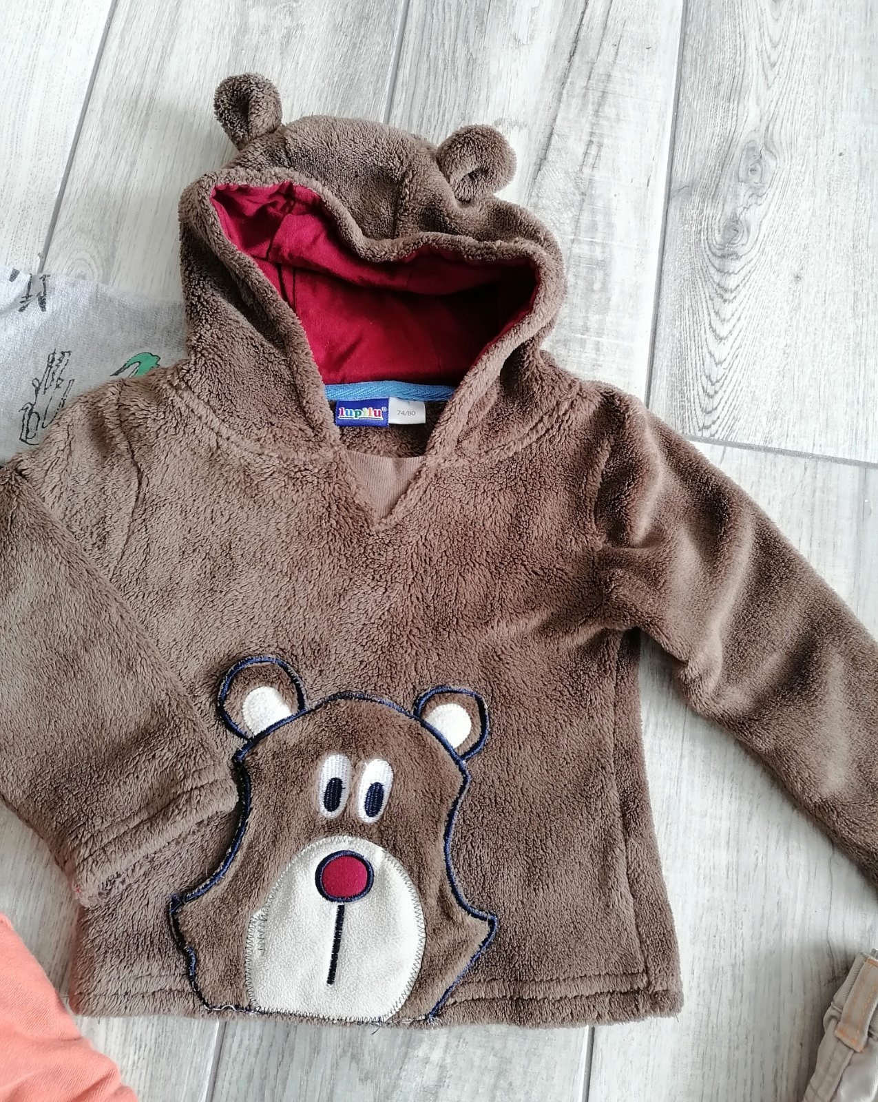 Hnedá mikinka veľmi pekná, tmavohnedé podšité nohavice tiež super stav.