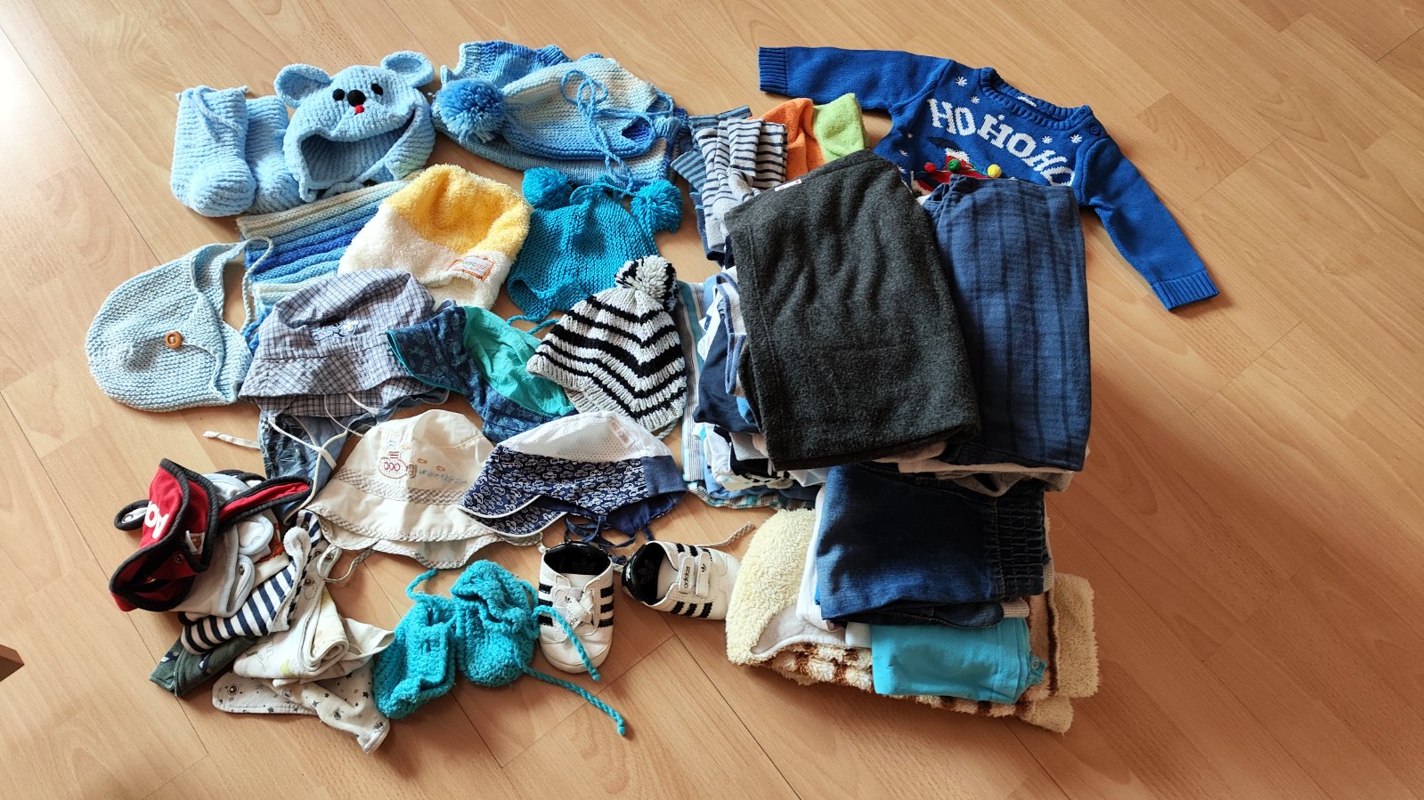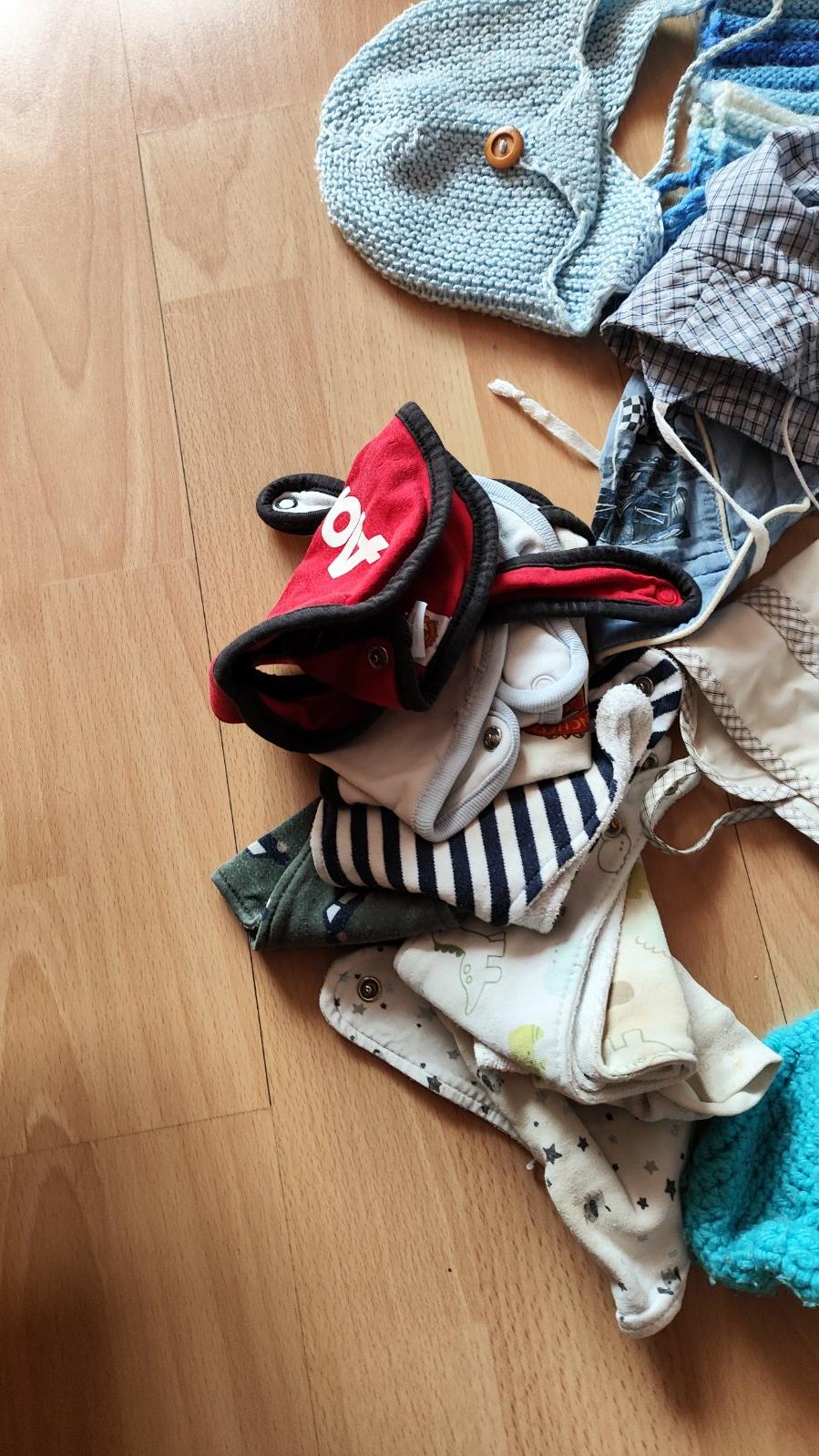 Predám balík oblečenia pre chlapčeka na 6-9 mesiacov, veľkosť 74. Sú tam rôzne tričká s dlhým aj krátkym rukávom, bodička, dupačky, nohavice, čiapky, slintáky,...