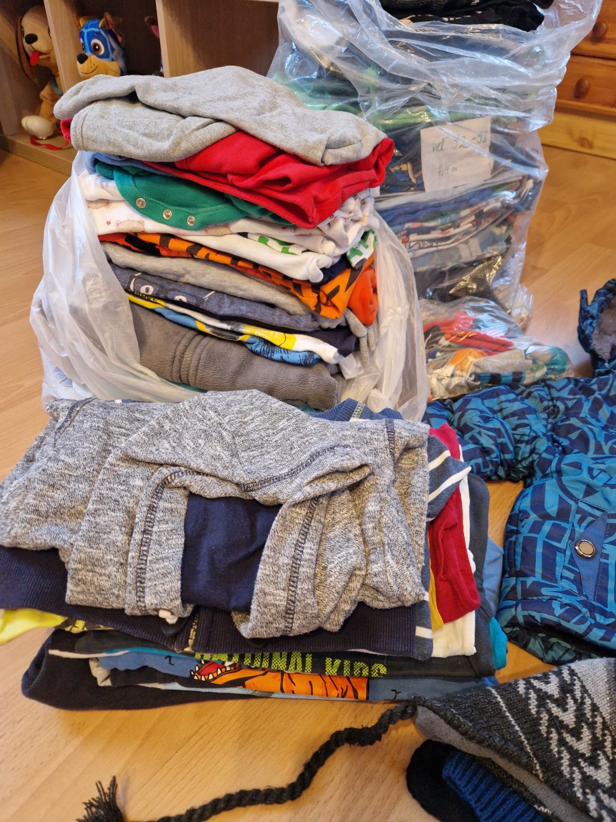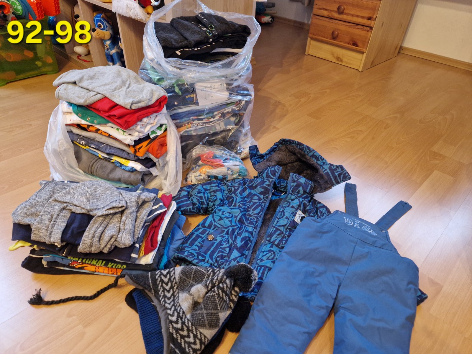 Balik oblecenia: pyzamko mimoni v.92/98, modrosede tricko v.98, teplaky v.98 a tmavomodry svetrik v 98. Cena 6€ plus postovne.