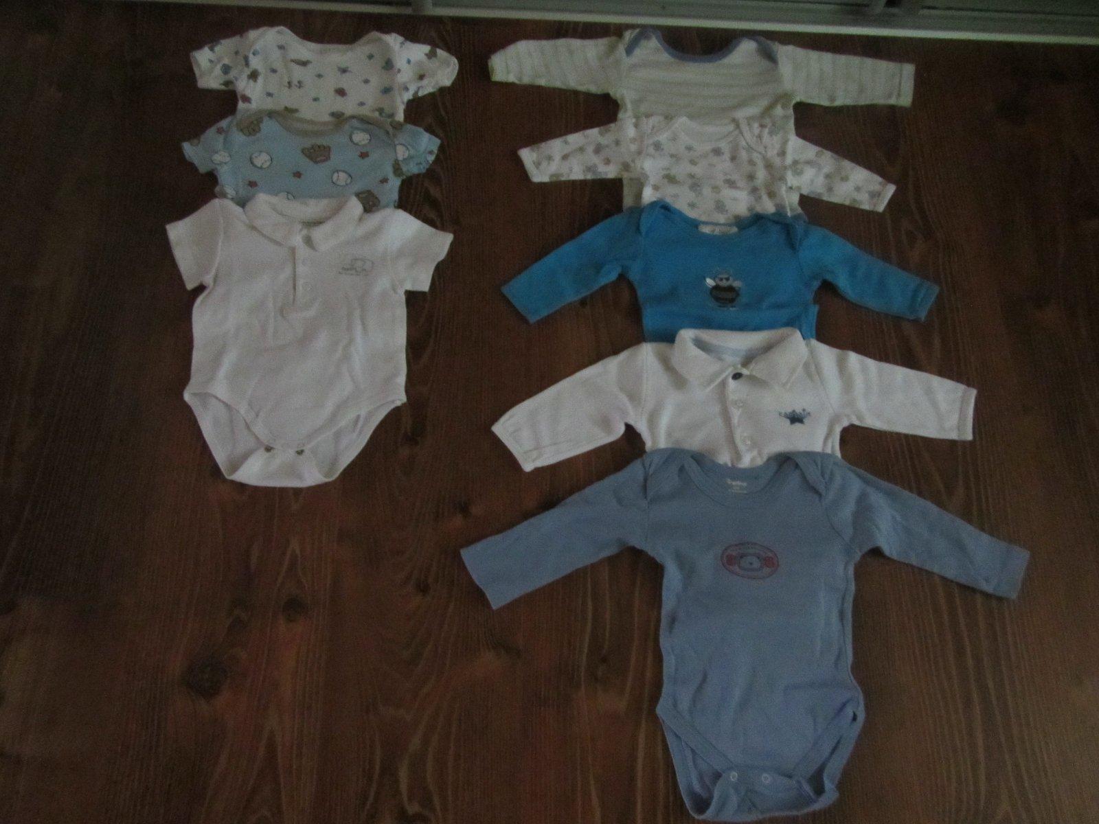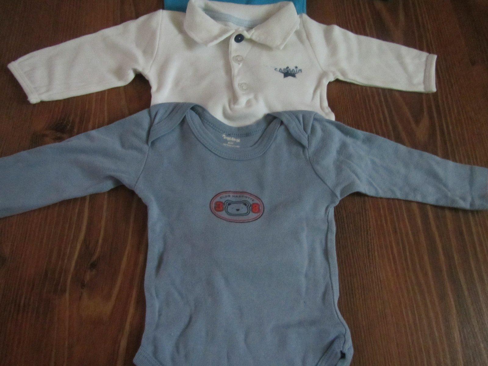 Body mam v tychto velkostiach..... 1kus-velkost 50, 2kusy-3 az 6mesiacov, 1kus 62 az 67, 1kus 74/80.....pisem presne tak, ako je uvedene na stitku, lebo kazdy vyrobca uvadza inak, niektory v cislach, iny zase v mesiacoch...ci centimetroch. Body s kratkym rukavom, modre s loptami a biele s korytnackami, macikmi pridavam zdarma, na jednom chyba jeden cvok medzi nozickami a druhe na zadnej strane na pliecku ma malinky fliacik. Body s kratkym rukavom, biele s golierikom, pisu na stitku 71cm za 1e. Kosielky, dva kusy, kremova a modra farba, velkost 0-3mesiace oba kusy za 1e.