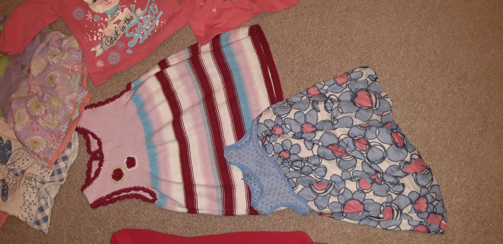 Predám balík oblečenia (je toho viac ak na foto-zase som vyraďovala čo už je malé), vecičky nosené minimálne , cena 25 eur.
