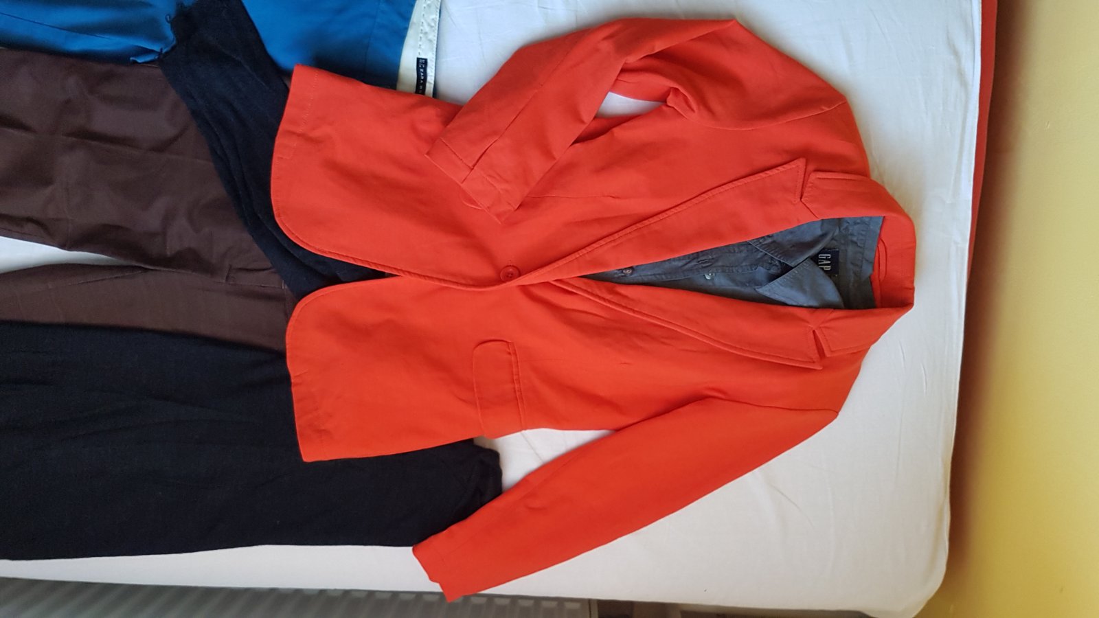 1. Oranžové sako Amisu, 34, velmi efektne, z "teplakoviny" - 2.5€