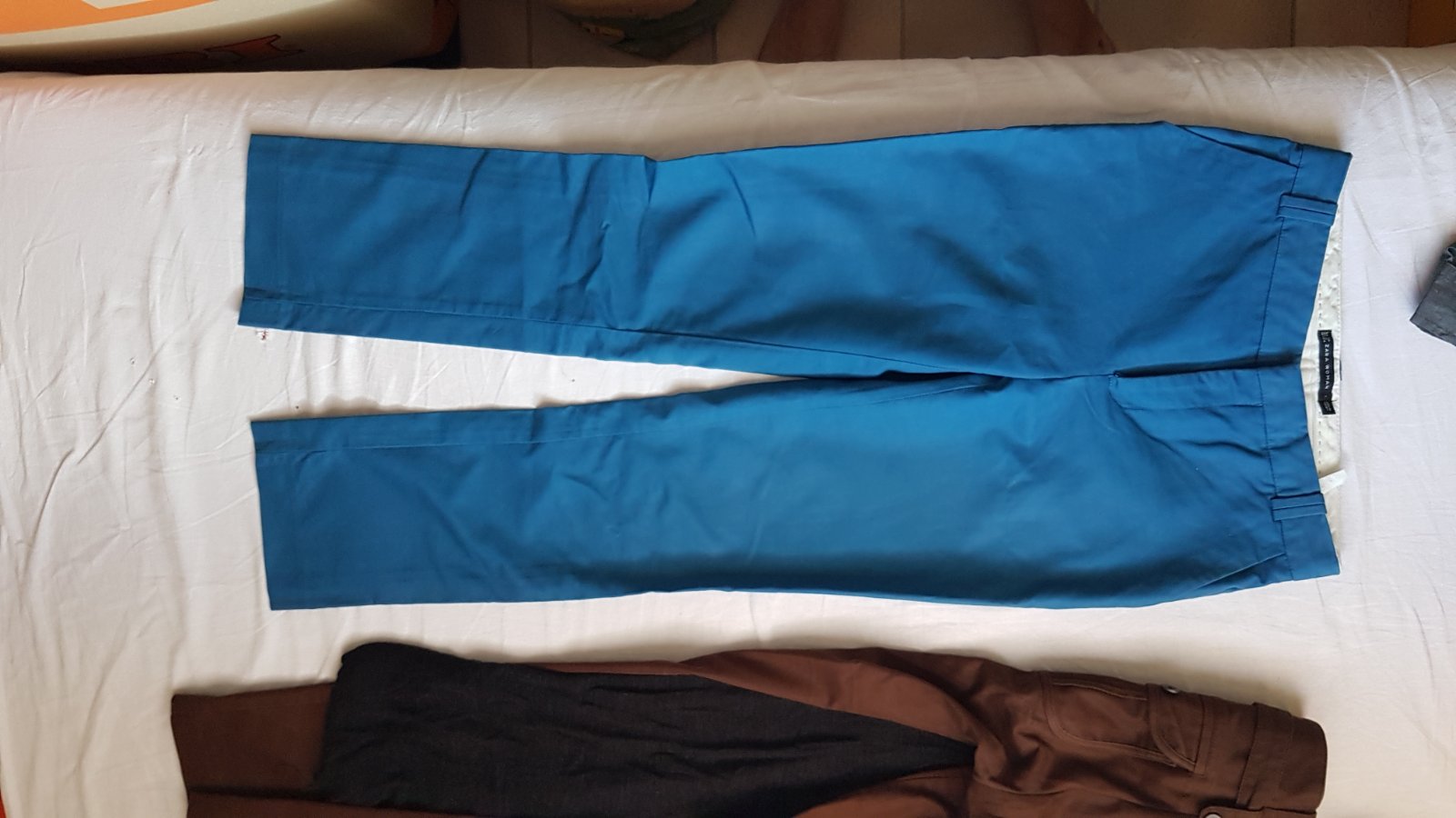 3. Modre nohavice Zara 34, stredne vysoky sed, uzke nohavice - 3.5€