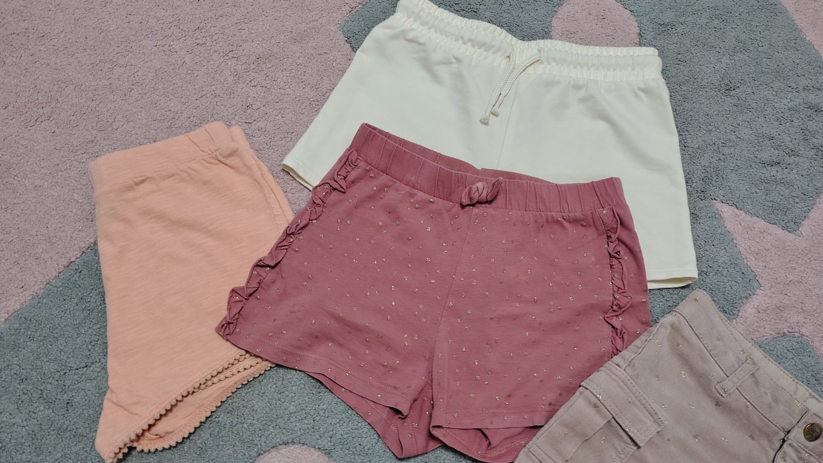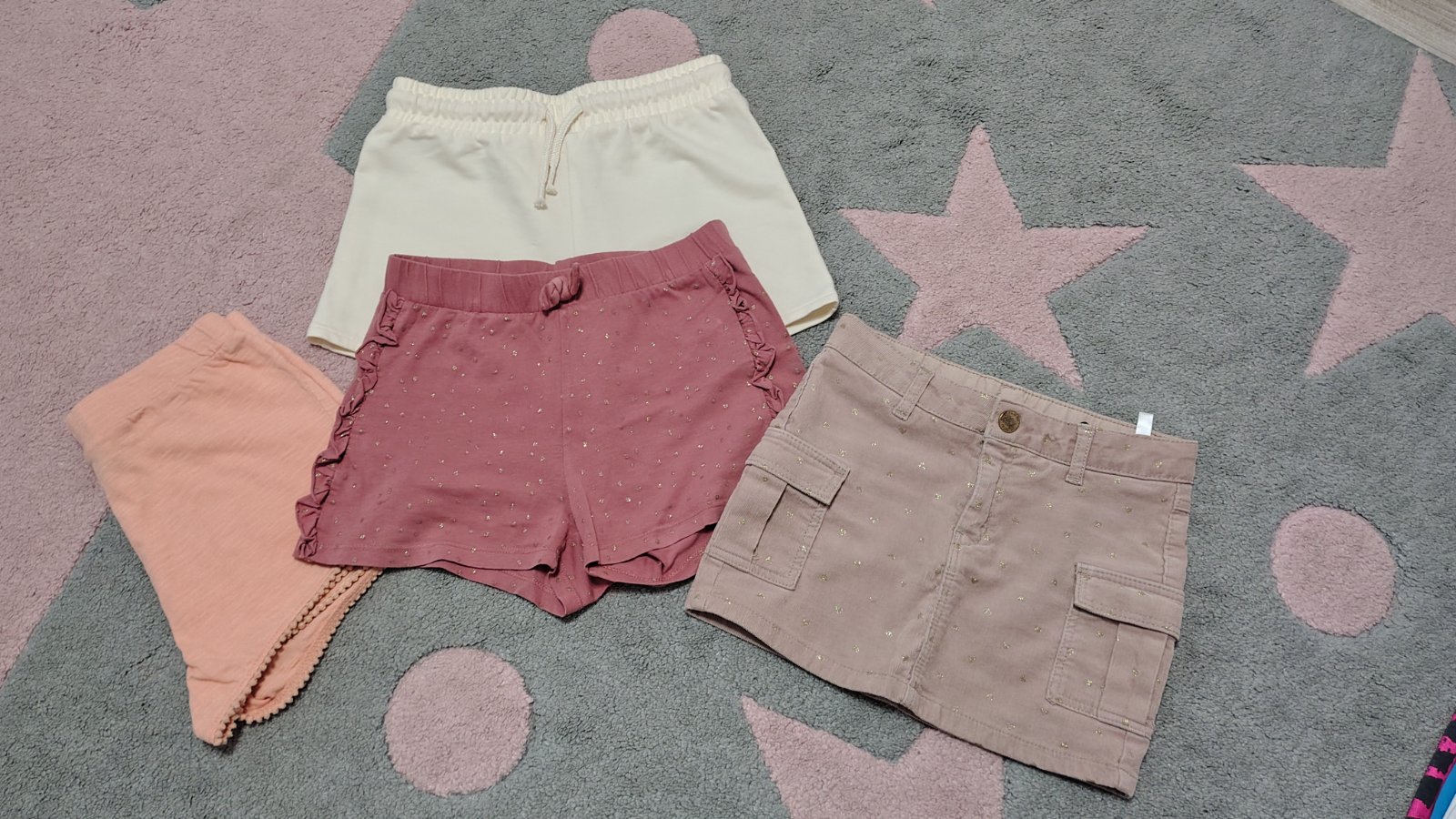 Predná 3ks kraťasy v TOP stave, béžové nenosené značky H&M, F&F + suknička H&M krásna, mäkkučká, pohodlná.