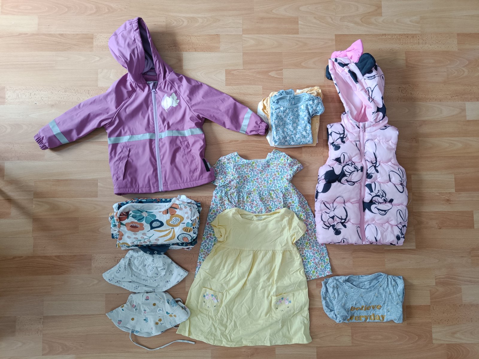 Predam balík oblečenia pre dievča, veľkosť 1,5-2 roky. Oblečenie je ako nové, väčšinou ide o značku Next. V balíku je bunda do dažďa, vesta, nohavice, kraťasy, sukne, šaty, letné klobúky, dlhý a krátky rukáv.