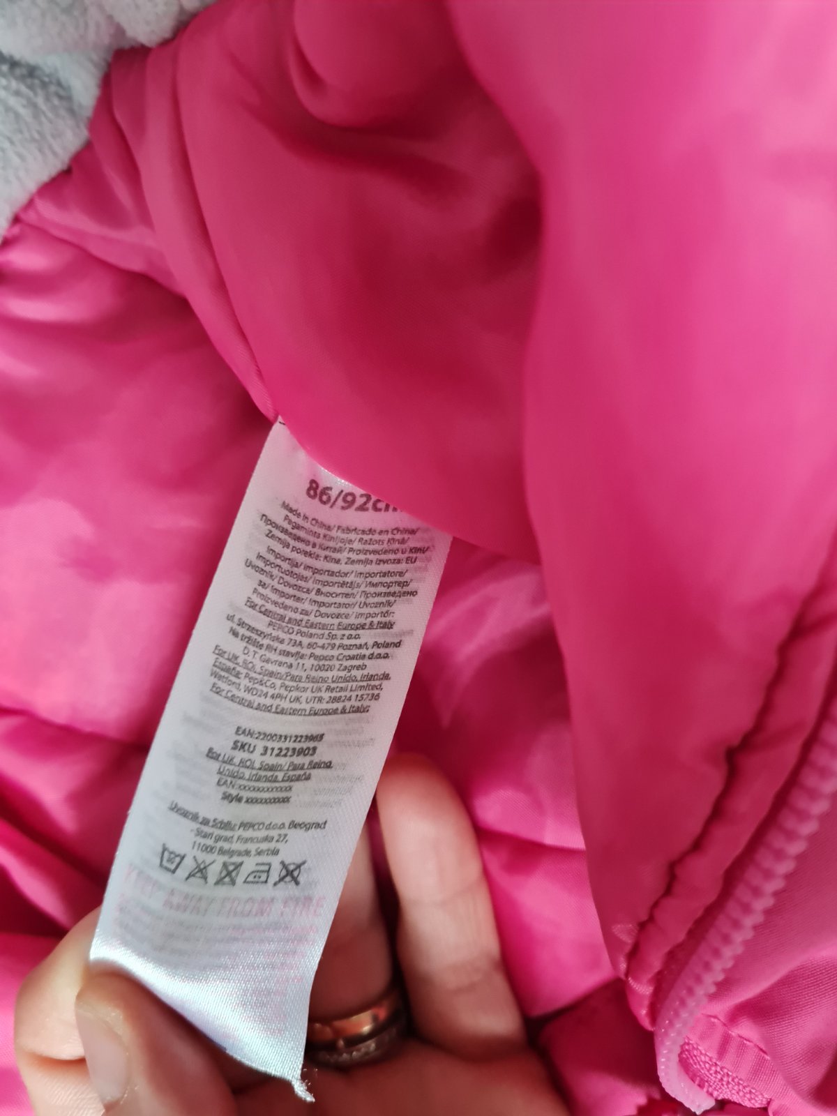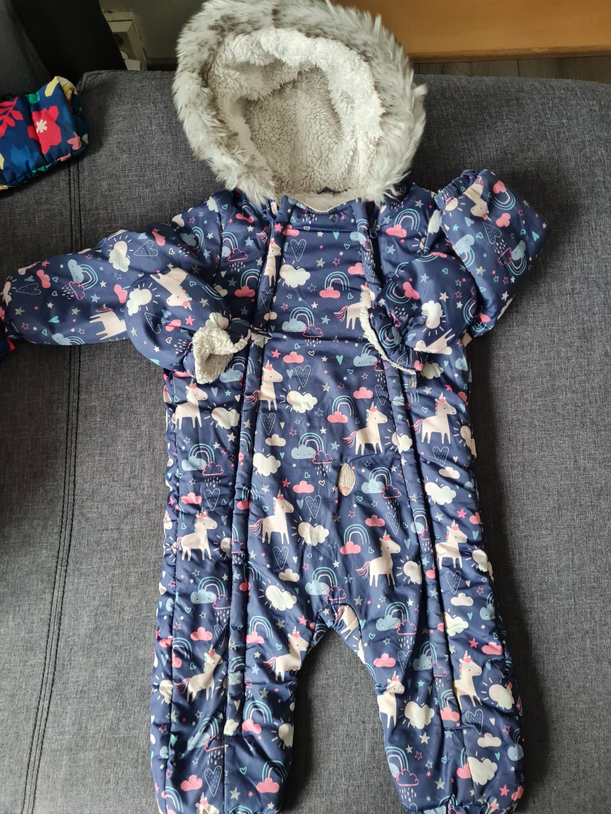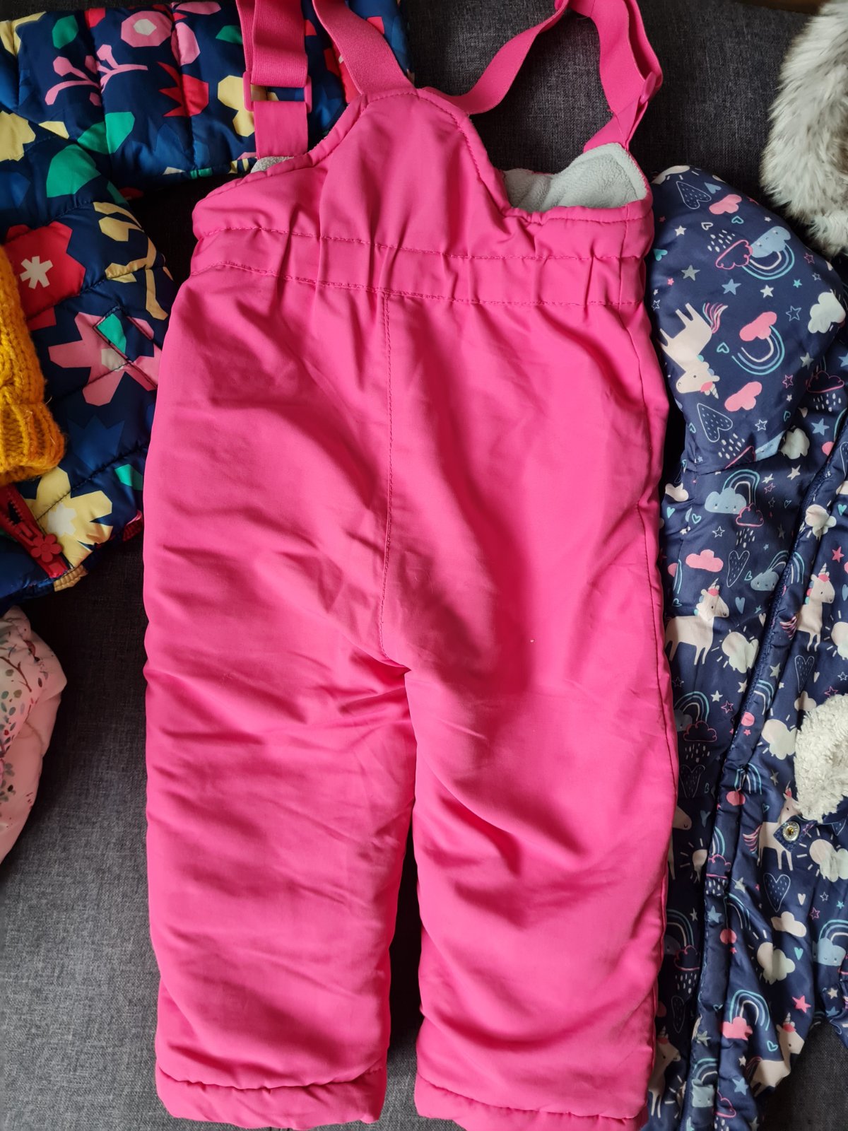 Overal noseni najcastejsie ale urcite este posluzi,velkost 86,znacka f&f,ma aj rukavicky,vpredu si ho mala roztrhla,zasila som to nasivkou,pri noseni nebidiet- 3 eura
