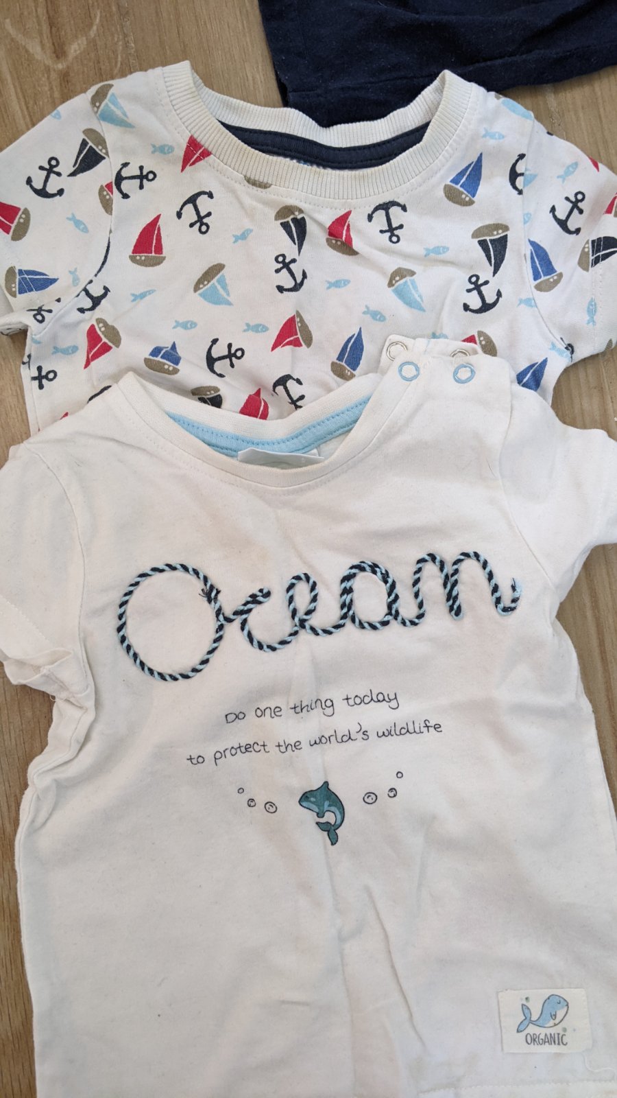 Ponúkam na predaj pekne vecičky pre chlapčeka na leto. Mali sme toho tak strašne veľa, že sme ani raz niestihli použiť. Vsetky vecičky na foto sú nenosené, bavlnené. Veľkosť 98. Cena 18 eur.