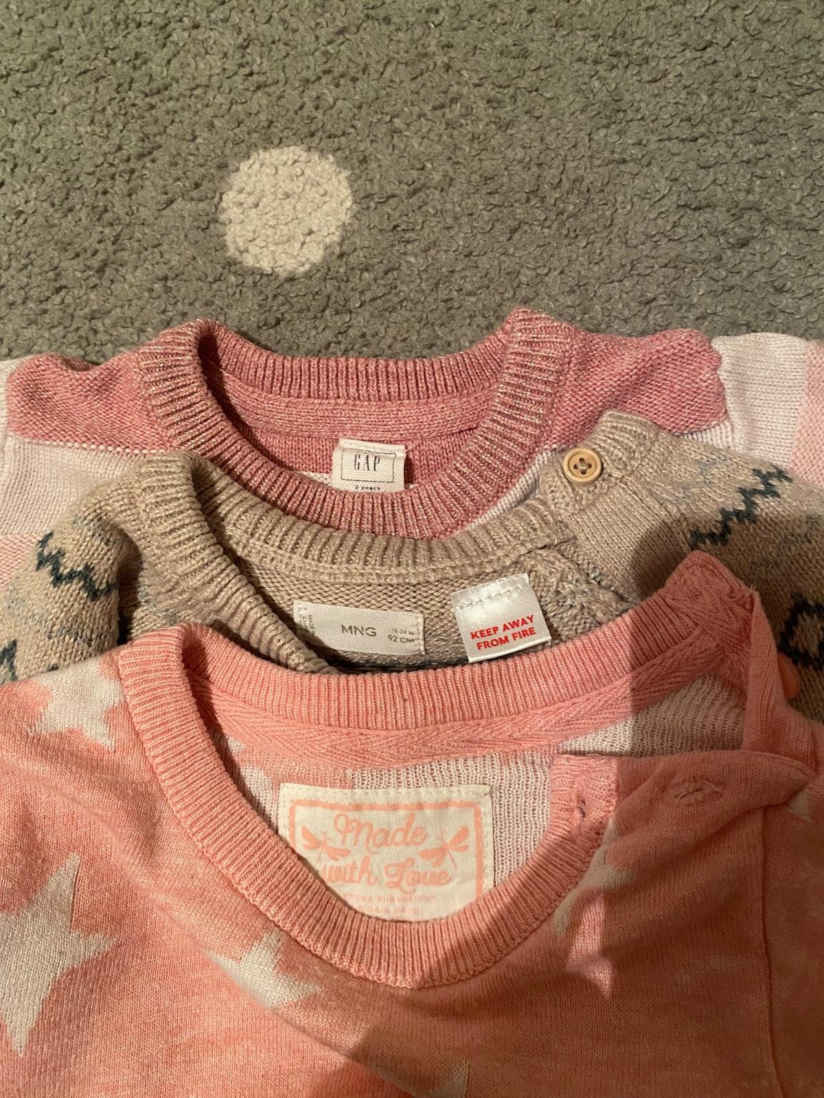 Stav viď. foto nižšie. Rôzne značky oblečenia: C&A, GAP, Benetton, Lupilu, Mango, dopodopo, Palomino, F&F, Zara, atď.