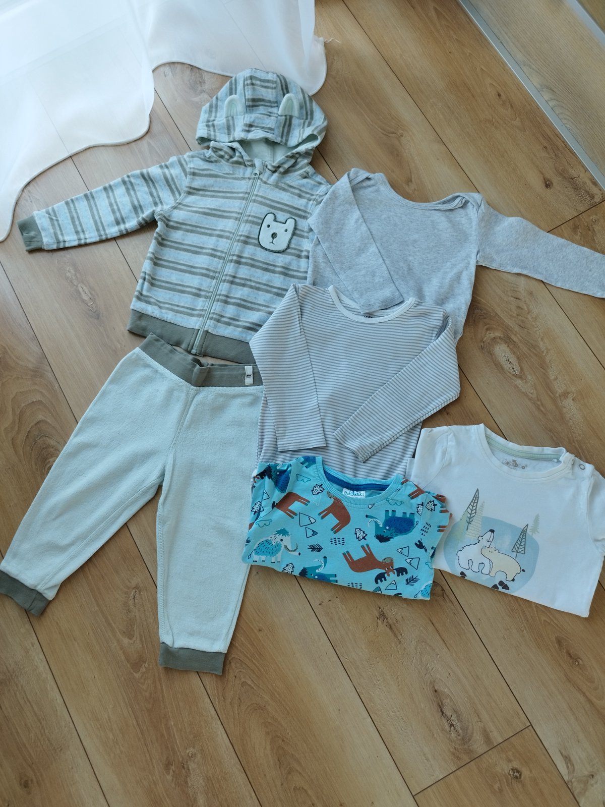 Predám krásny balík pre chlapca 12-18mes.najdete tam 2 teplakove súpravy, 3 nohavice, košeľa, tričká, mikiny, 2, slapky, teplaky.