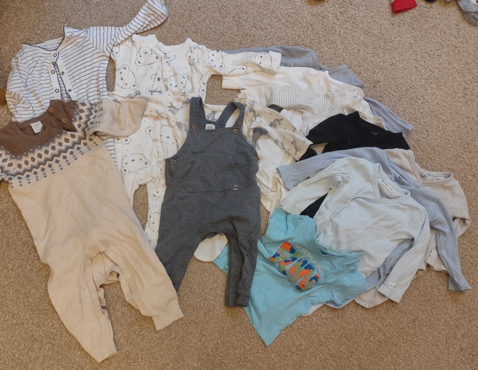 3x body s dlhým rukávom, 1x tričko s dlhým rukávom, prechodná bunda. Bez poškodenia, párkrát oblečené.