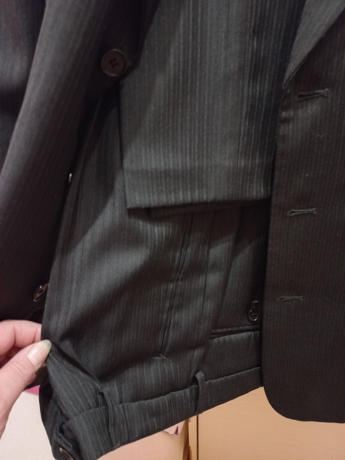 Nove veci akurat oblek bol pouzity par krat na skuske je bez poskodenia, slimkovy pre mladeho chlapca.